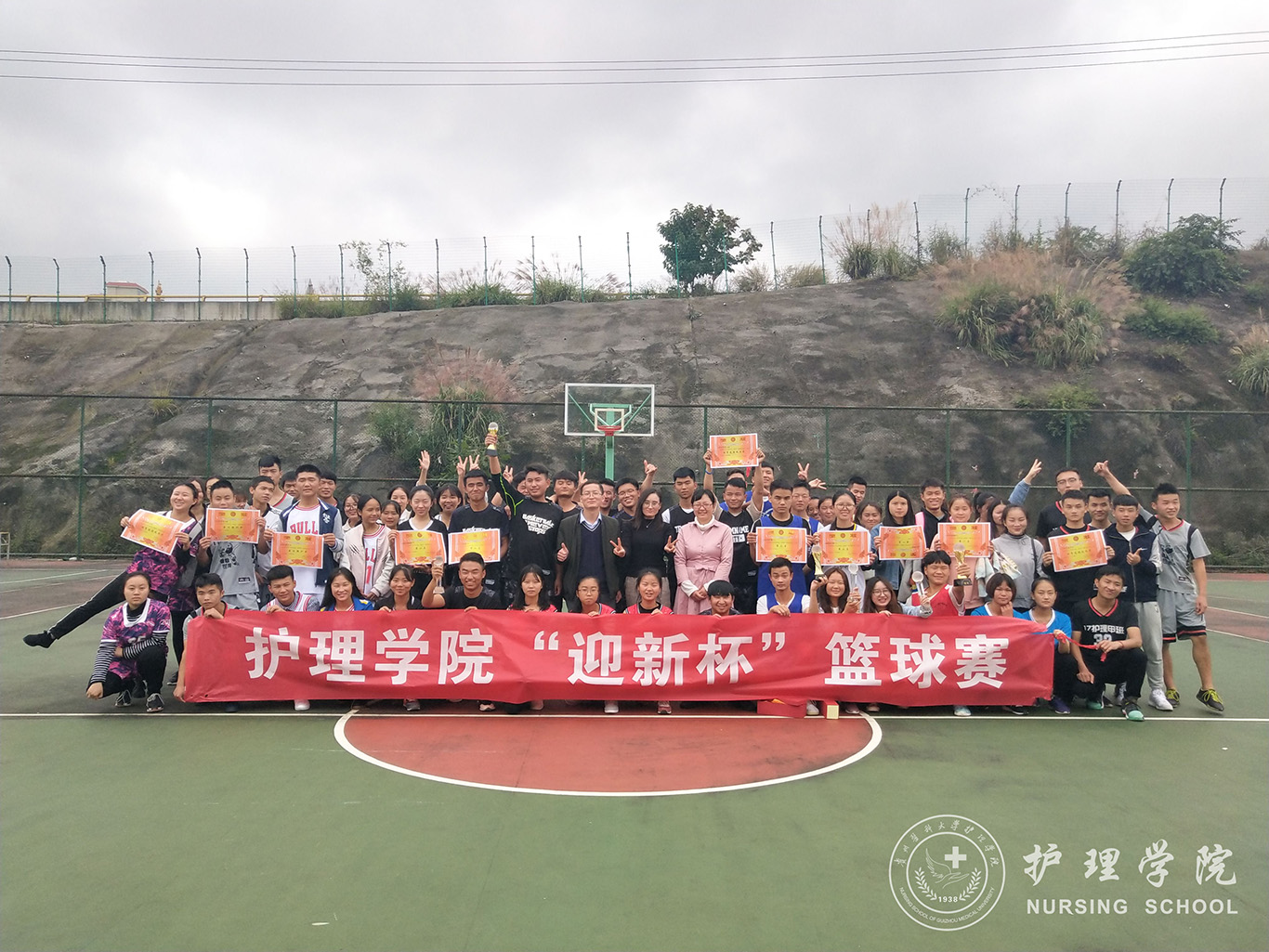 闭幕式上,主持人宣布了本次“迎新杯”篮球赛的获奖班级:2018级护理学甲班包揽了男、女组第三名;2018级护理学丙班包揽男、女组第二名;2017级护理丙班包揽了男、女组第一名。三位老师分别对获奖队伍进行颁奖并合影留恋。接着,马景瑶老师致闭幕词,他希望同学们能通过篮球赛去强身健体,让锻炼成为一种习惯;同时通过这样的方式去和他人交流,增进同学们之间的感情和友谊,增强彼此的联系。最后,王晓玲老师对此次篮球赛做出总结:一是赛场上的每一位队员都拼尽全力,努力为班级争光,在接下来的生活学习中要继续发扬这种团结奋进、永不放弃的的精神;二是表扬了学生会成员和各班班委对每一位参赛选手的精心照顾,希望学生干部们能在接下来的工作中更加用心和负责;三是永远记住自己是一名未来的医护人员,要保证自己有好的健康体魄,还要在各方面不断提升自己,为学院增光添彩。