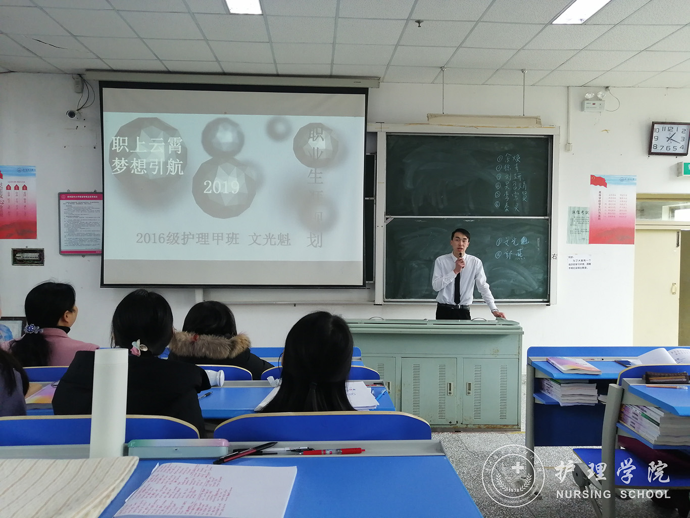 为了深入贯彻习近平新时代中国特色社会主义思想和党的十九大精神,把“稳就业”放在更加突出的位置,传播和普及职业规划和创业理念,引导大学生自觉树立择业和就业观,提高大学生就业、创业技能与实践能力,3月11日中午12:30,美加墨世界杯官方网站在南北校区举办了学生职业生涯规划大赛暨校级选拔赛。美加墨世界杯官方网站党委书记杨英、党委副书记王秀红、学生科科长曾敏、部分专职教师和辅导员担任评委,比赛现场吸引了来自各班级同学观看。