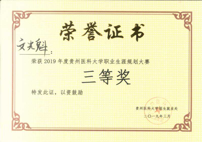 3月27日,由我校招生就业处主办、临床医学院与口腔医学院共同承办的美加墨世界杯官方网站“职上云霄,梦想引航”大学生职业生涯规划大赛在南校区道德讲堂举行。世界杯官网护理学2016级甲班的文光魁同学获得了三等奖的好成绩。