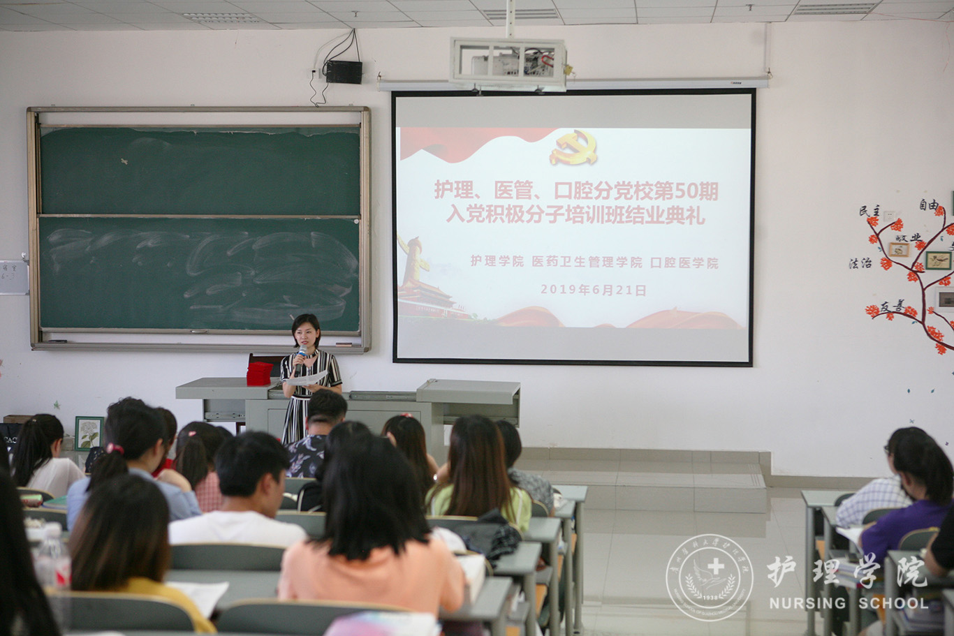 6月21日,护理、医管、口腔分党校第50期入党积极分子培训班结业典礼在南校区7404教室举行。口腔医学院党委副书记钱禾、美加墨世界杯官方网站党委副书记王秀红、医药卫生管理学院分团委书记刘安跃及培训班全体学员参加了结业典礼。典礼由本期培训班班主任、美加墨世界杯官方网站学生第二党支部书记马景瑶主持。