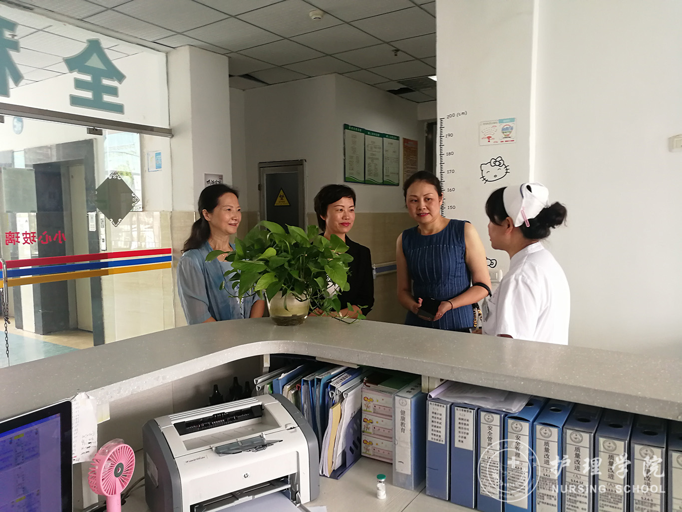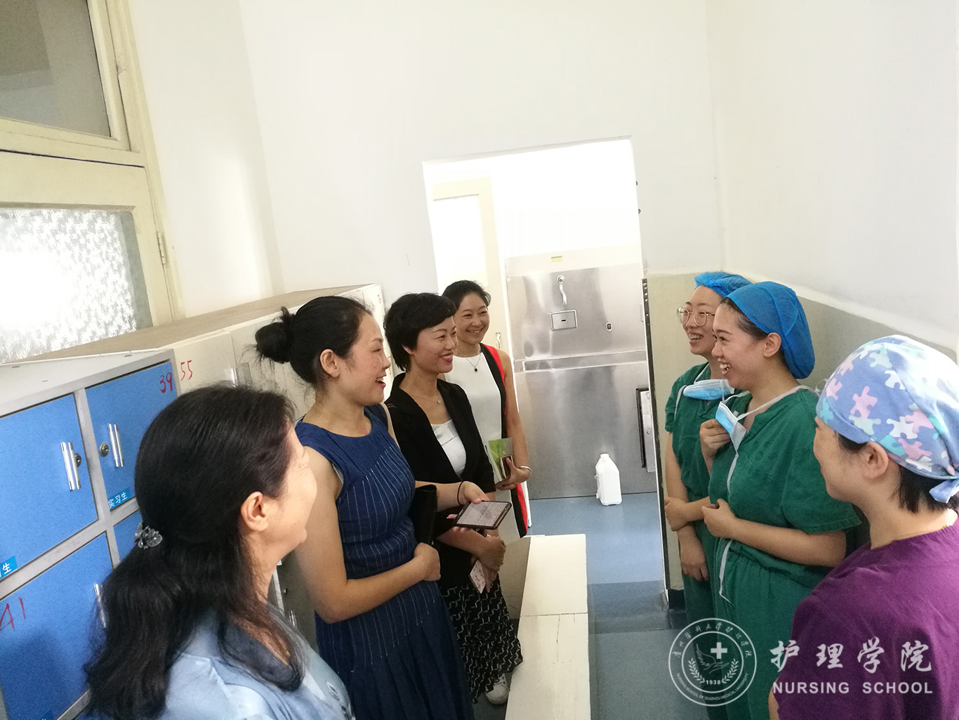 8月26日,学院党委副书记王秀红及生产实习科科长柳忠燕藉参加专升本班开学典礼之机,到第三附属医院看望世界杯官网护理学及助产学专业实习同学,与护理部临床实习教学管理老师一起走访了相关科室,详细询问了解了同学们的现实表现,和病房护士长、带教老师等进行了亲切交谈,交流带教经验。同学所在科室均给予了同学们很高的评价,特别是对理论知识的掌握及工作纪律、沟通合作方面给予充分的肯定。