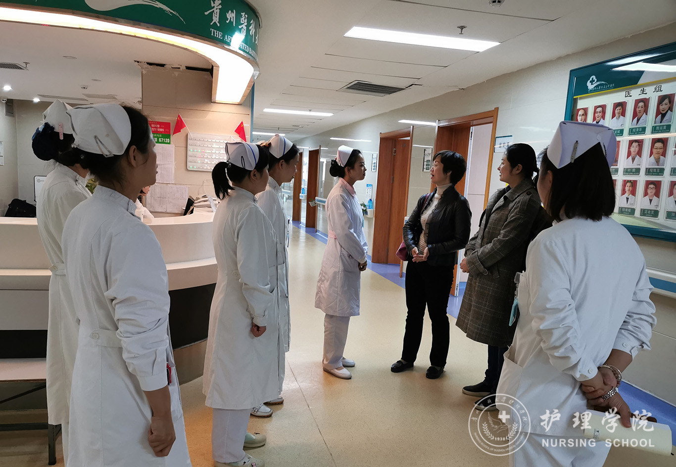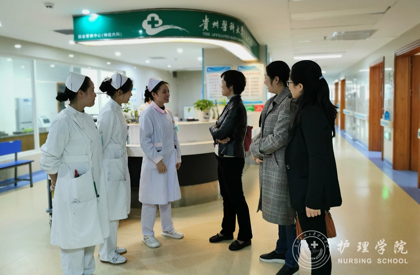 10月16日,美加墨世界杯官方网站党委副书记王秀红、正科级组织员曾敏、内科护理学教研室副主任晏家芳、妇儿科护理学教研室副主任刘林敏、学生科副科长毕丽一行到附属白云医院就护理学(专升本)学生的培养进行交流并到各科室看望2016级实习生。附属白云医院副院长彭红英、副院长刘惠萍及教学办公室、各护理教育组老师参加了交流。
