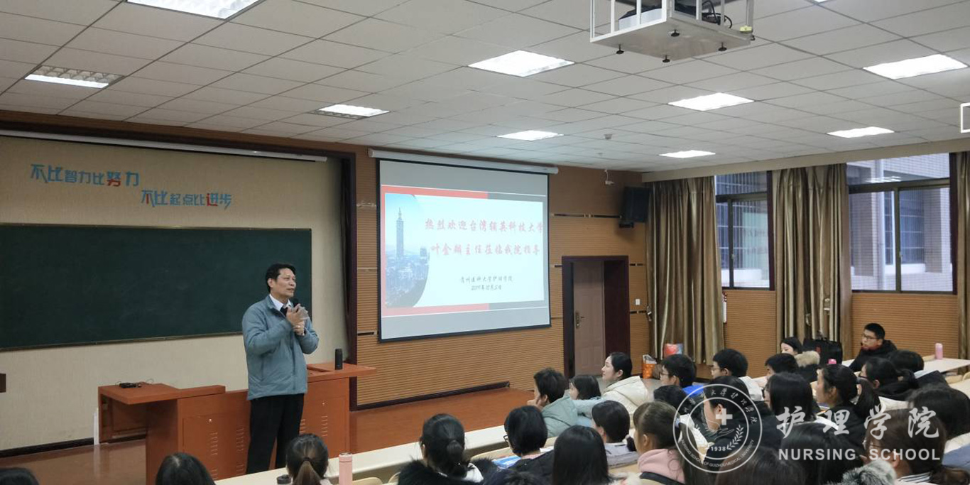 12月3日,美加墨世界杯官方网站在南校区百川楼1101教室召开了赴台交流学习宣讲会。台湾辅英科技大学国际暨两岸事务处副处长叶金麟、学校国际交流合作处龚敏科长、美加墨世界杯官方网站党委副书记王秀红、正科级组织员曾敏及2018级辅导员李杏春、护理学2018、2019级同学代表约150人参加宣讲会。