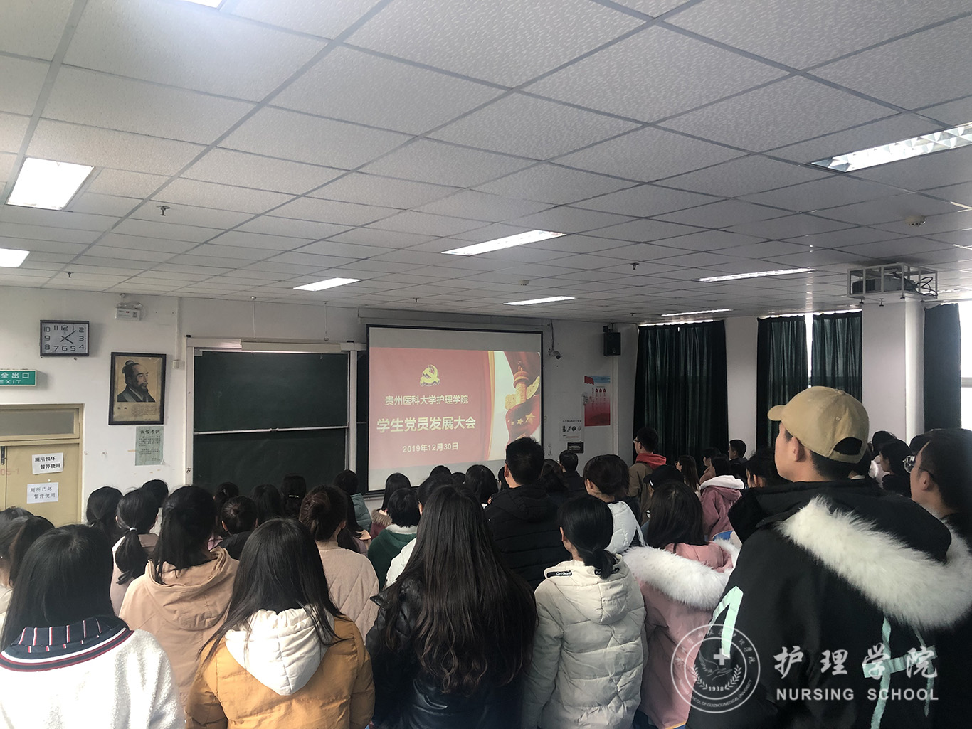 2019年12月30日,美加墨世界杯官方网站学生第一、二党支部在北校区3402教室召开了学生党员发展大会暨转正大会。美加墨世界杯官方网站党委书记杨英、党委副书记王秀红、正科级组织员曾敏、团委副书记王晓玲、综合办公室副主任、学生第一党支部书记李颖,部分辅导员、班主任,学生第一、第二党支部全体成员,全体发展对象参加了此次会议。会议由学生第二党支部书记马景瑶主持。
