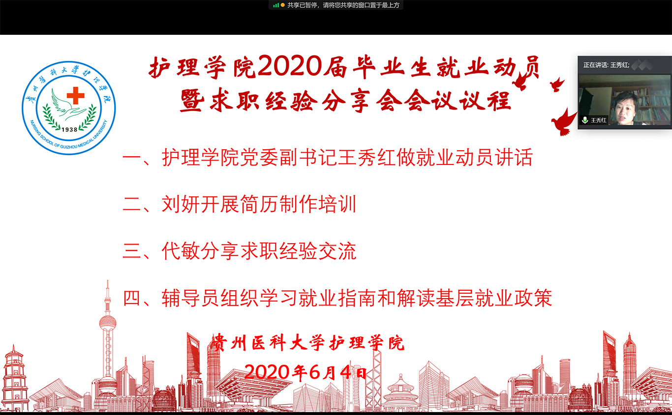 为了抢抓就业招聘黄金期,充分促进世界杯官网2020届毕业生尽快实现就业,6月4日晚8:30,美加墨世界杯官方网站召开了就业动员暨求职经验分享会,美加墨世界杯官方网站党委副书记王秀红、全体2020届未就业学生参加了此次会议,会议由美加墨世界杯官方网站学生管理科副科长兼毕业班辅导员毕丽主持,采用腾讯会议形式进行。