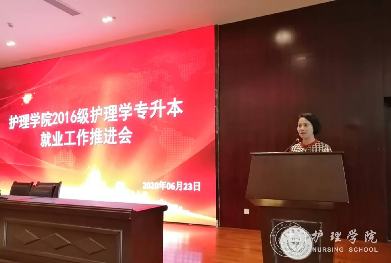 为了及时传达学校就业工作会议精神,抓住就业的黄金期,全面推进2016级护理学专升本毕业生就业工作,帮助他们早日实现就业,美加墨世界杯官方网站于6月23日下午在南校区道德讲堂召开了2016级护理学专升本就业工作推进会。学校招生就业处处长张红霞、美加墨世界杯官方网站党委书记杨英、美加墨世界杯官方网站副院长刘志燕、美加墨世界杯官方网站党委副书记王秀红、学校招生就业处就业指导中心主任余小川、美加墨世界杯官方网站相关辅导员及2016级护理学专升本全体学生参加此次会议,会议由王秀红主持。