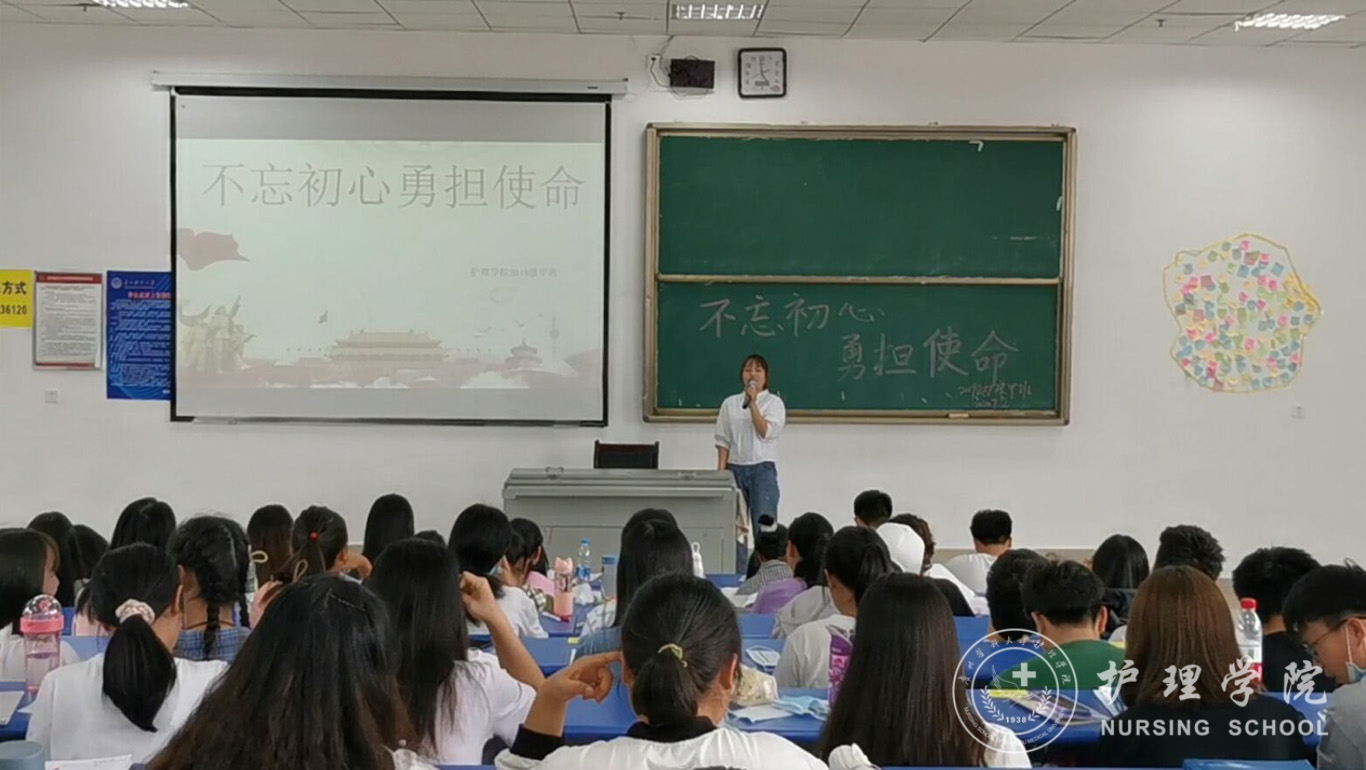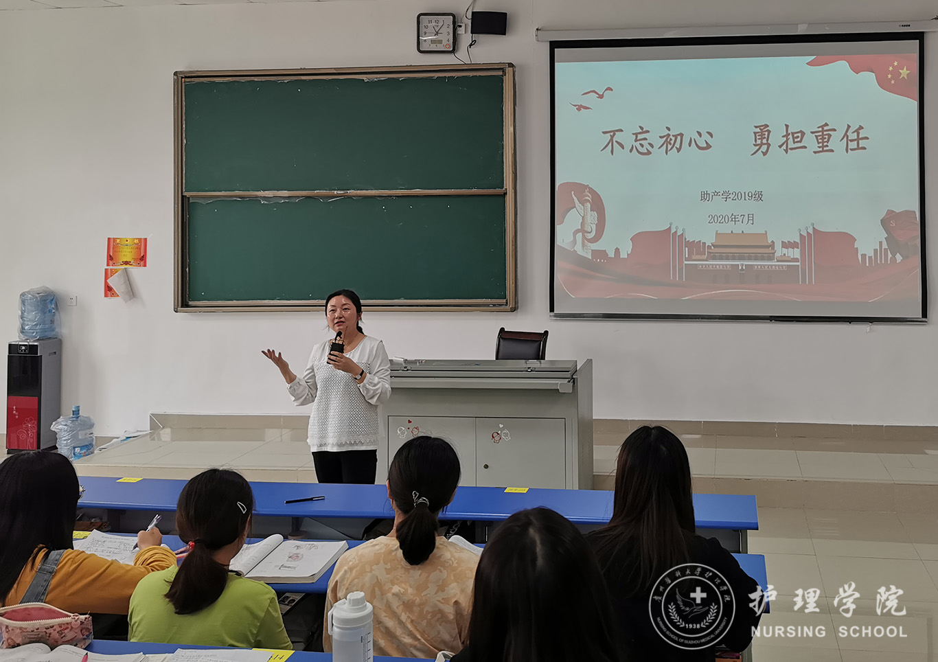为使同学们充分认识社会主义的优越性,更加坚定以人民为中心的政治立场,勇于担当历史使命和社会责任。2020年7月2日到3日,美加墨世界杯官方网站护理学、助产学2019级四个班级分别于本班教室召开了“不忘初心,勇担责任”意识形态教育主题班会,全体同学参加。会议由辅导员组织,各班班长主持。
