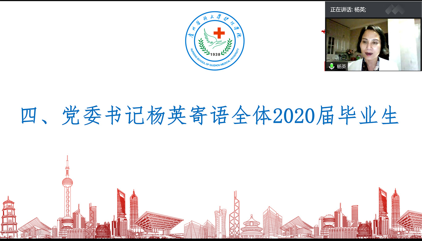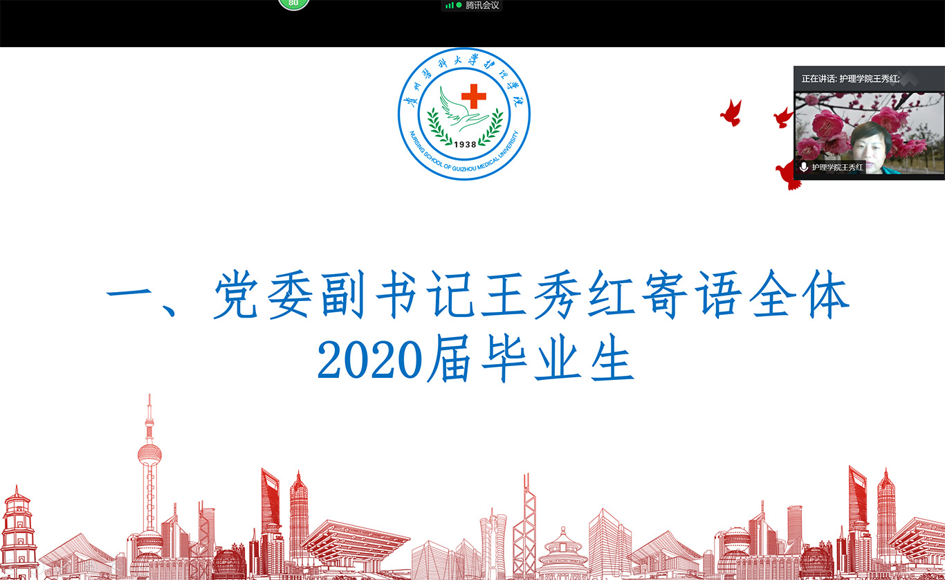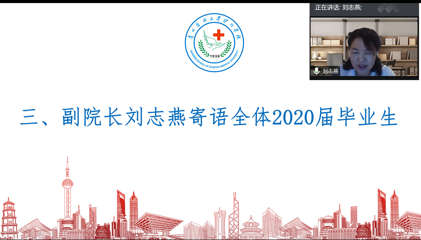 随后刘志燕寄语全体毕业生。为了参加此次主题班会,她特意穿了自己母校的校服,用实际行动告诉大家:贵医是同学们永远的家,母校的大门随时为大家敞开。希望同学们在以后的工作和生活中,常怀感恩的心,感恩父母,感恩一路相伴的老师和同学,感恩自己处在一个伟大的时代,用拼搏和奋进去实现人生价值。
