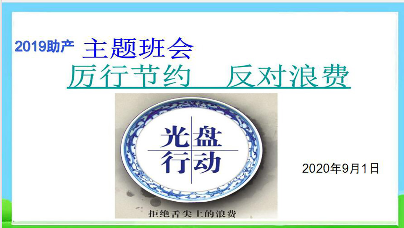 为了学习贯彻习近平总书记关于厉行节约的重要指示精神,2020年9月1日美加墨世界杯官方网站助产学2019级在广德楼1602教室召开“厉行节俭,反对浪费”的主题班会,本次班会由辅导员曾敏组织,助产学2019级全体同学参加。