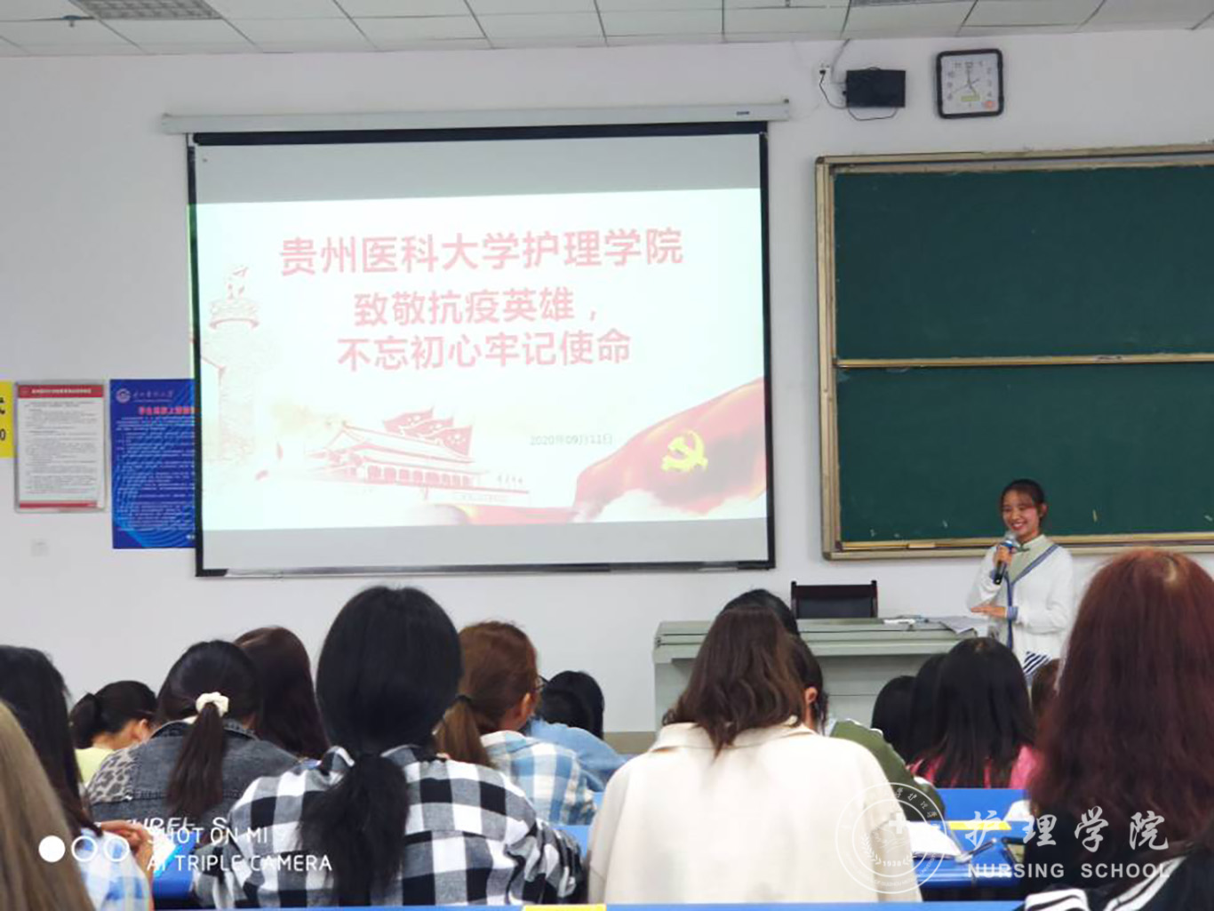 为了进一步加强对新一代青年大学生思想政治教育,树牢学生“四个自信”、“四个意识”,让学生充分感受到社会主义制度的优越性,培养学生勇于担当社会责任,向在抗击新冠疫情中不怕苦、不畏难的医疗前辈们学习。9月11日,美加墨世界杯官方网站于南校区广德楼1501教室、北校区3102教室分别开展了“致敬抗疫英雄,不忘初心、牢记使命”主题团日宣讲活动。本次主题团日宣讲活动由2019级护理学甲班团支部书记张凤毅同学和2018级护理学甲班团支部书记蓝阔耀同学主持。