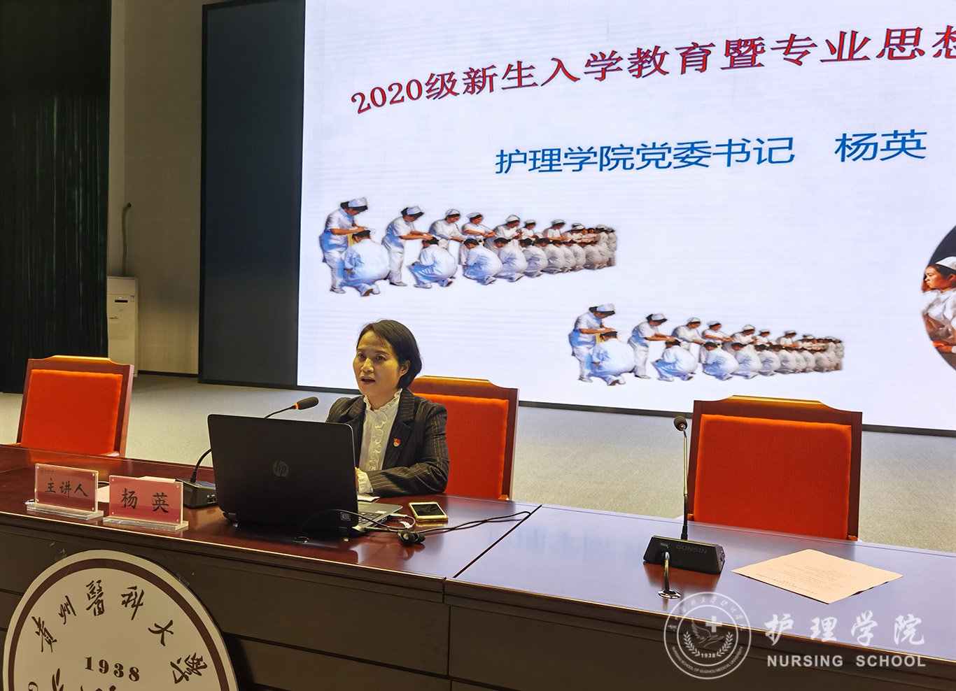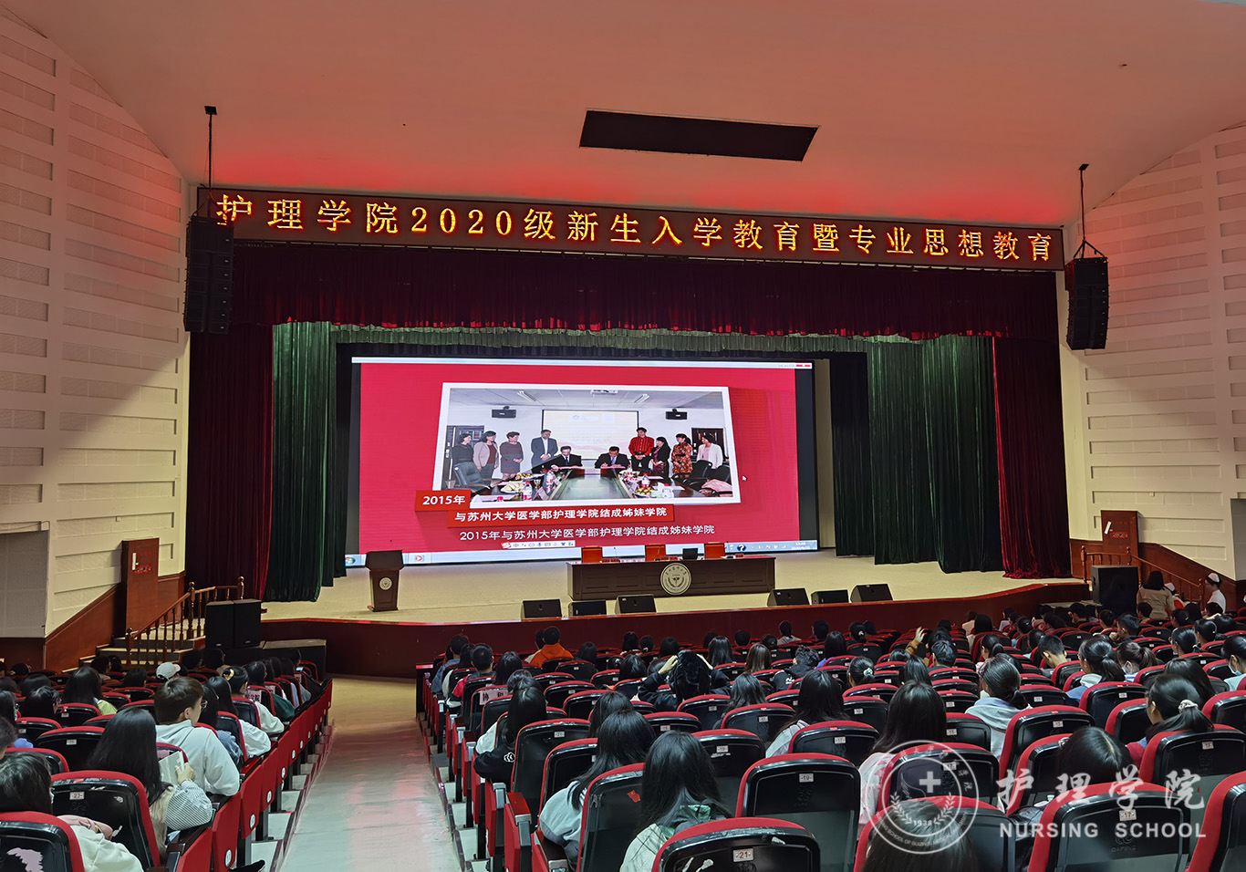 9月25日下午,美加墨世界杯官方网站在南校区大礼堂开展了2020级新生入学教育暨专业思想教育活动。美加墨世界杯官方网站党委书记杨英、副院长刘志燕、各职能科室负责人、全体教师及2020级681名新生参加了此次活动,活动由党委副书记王秀红主持。