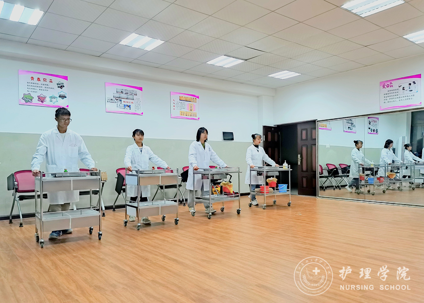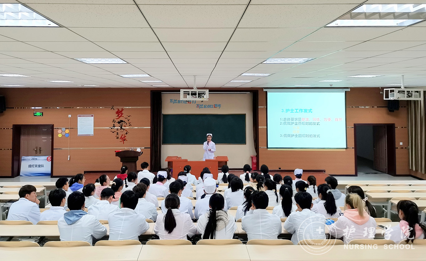 11月14日,为进一步深化优质服务理念,保证护理服务的专业性、技术性与规范性,美加墨世界杯官方网站护理技能协会于百川楼1101教室和形体训练室分别对协会新成员进行了护理礼仪理论知识讲解以及护理礼仪实践操作,本次培训内容有护士仪容礼仪、体态礼仪、言谈礼仪及服饰礼仪。活动由协会技训部组织。