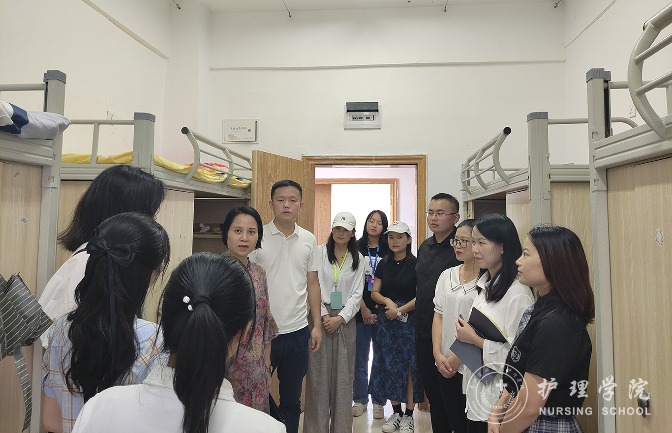 8月28日,为进一步做好新生入学教育工作,加强新生人文关怀,新生入校第一天,美加墨世界杯官方网站党委书记杨英、党委副书记何为、学生科副科长毕丽、院团委副书记王晓玲以及新生带班辅导员共同走进南校区七栋和九栋新生寝室探访慰问新生,传达学院的关心和问候。