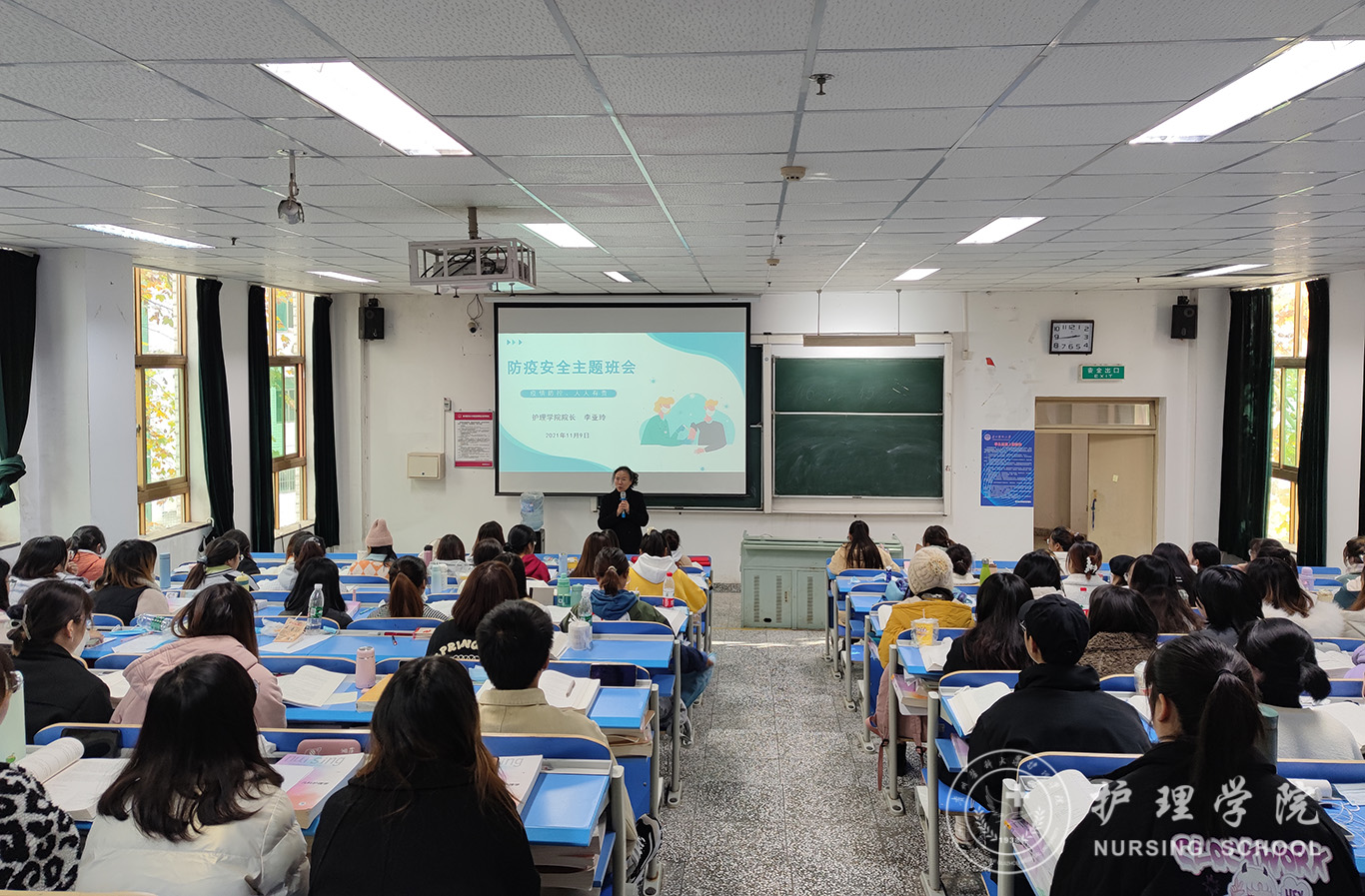 李亚玲强调,希望同学们能够将防疫安全常记于心,并融入学习生活当中,始终牢记初心使命,坚定理想信念,以护理人的职业信念、护理工作的价值不断历练自己,进而为祖国和人民的生命健康奉献自己的一份力量!