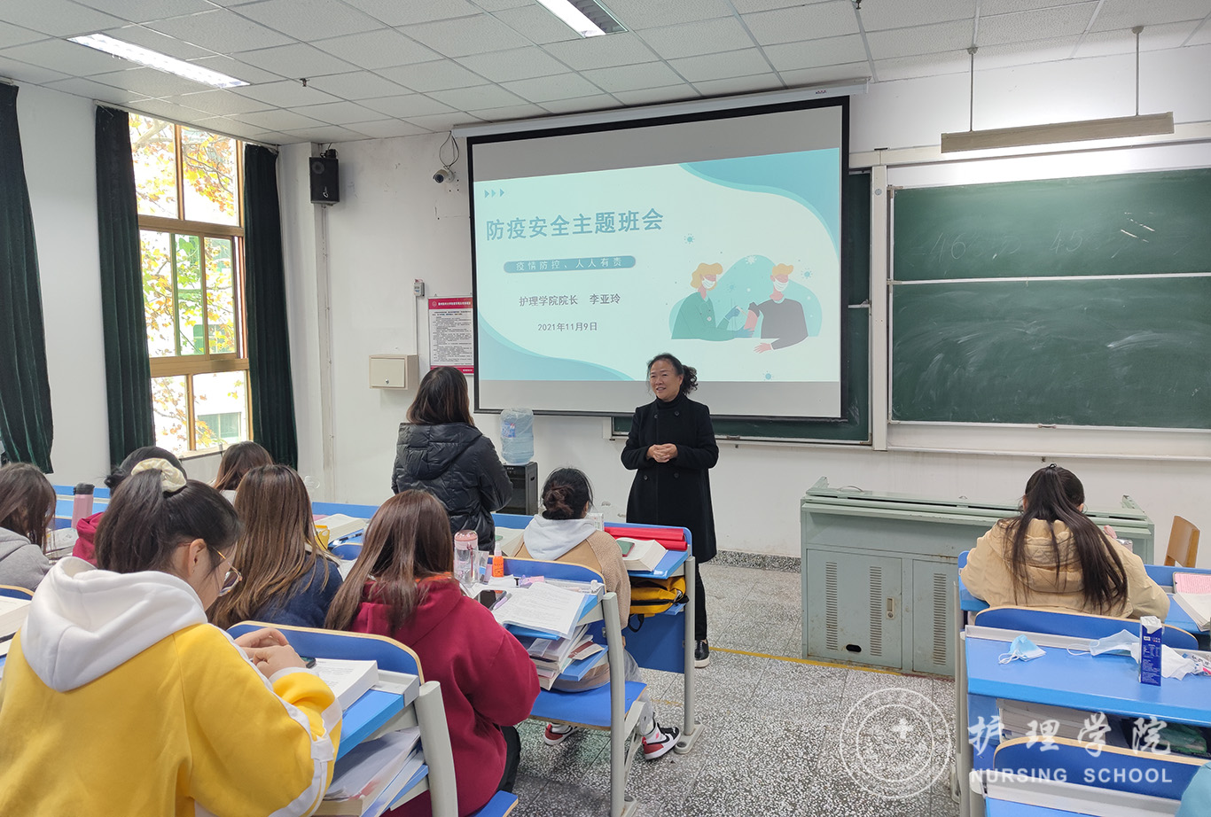 11月9日,为深入开展防疫安全教育,贯彻落实防疫常态化、防护生活化的战略目标。美加墨世界杯官方网站2019级护理学丙班组织开展一次特别的主题班会,诚挚邀请美加墨世界杯官方网站院长李亚玲以“防疫安全、人人有责”为题为全体同学讲授一堂生动有趣的思政课,辅导员杨叶卿参加。