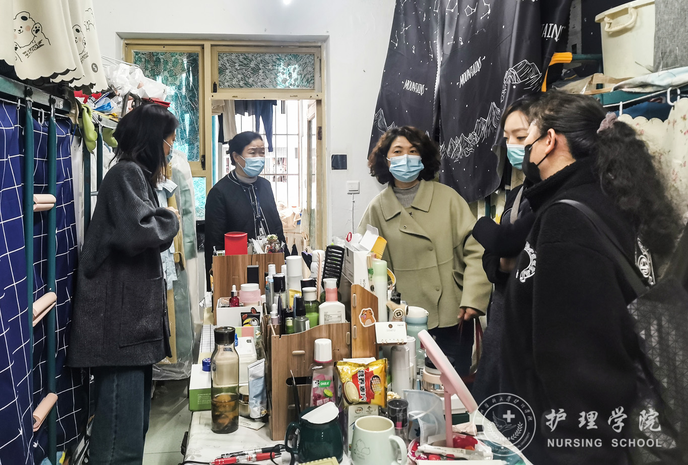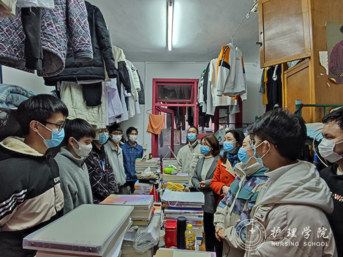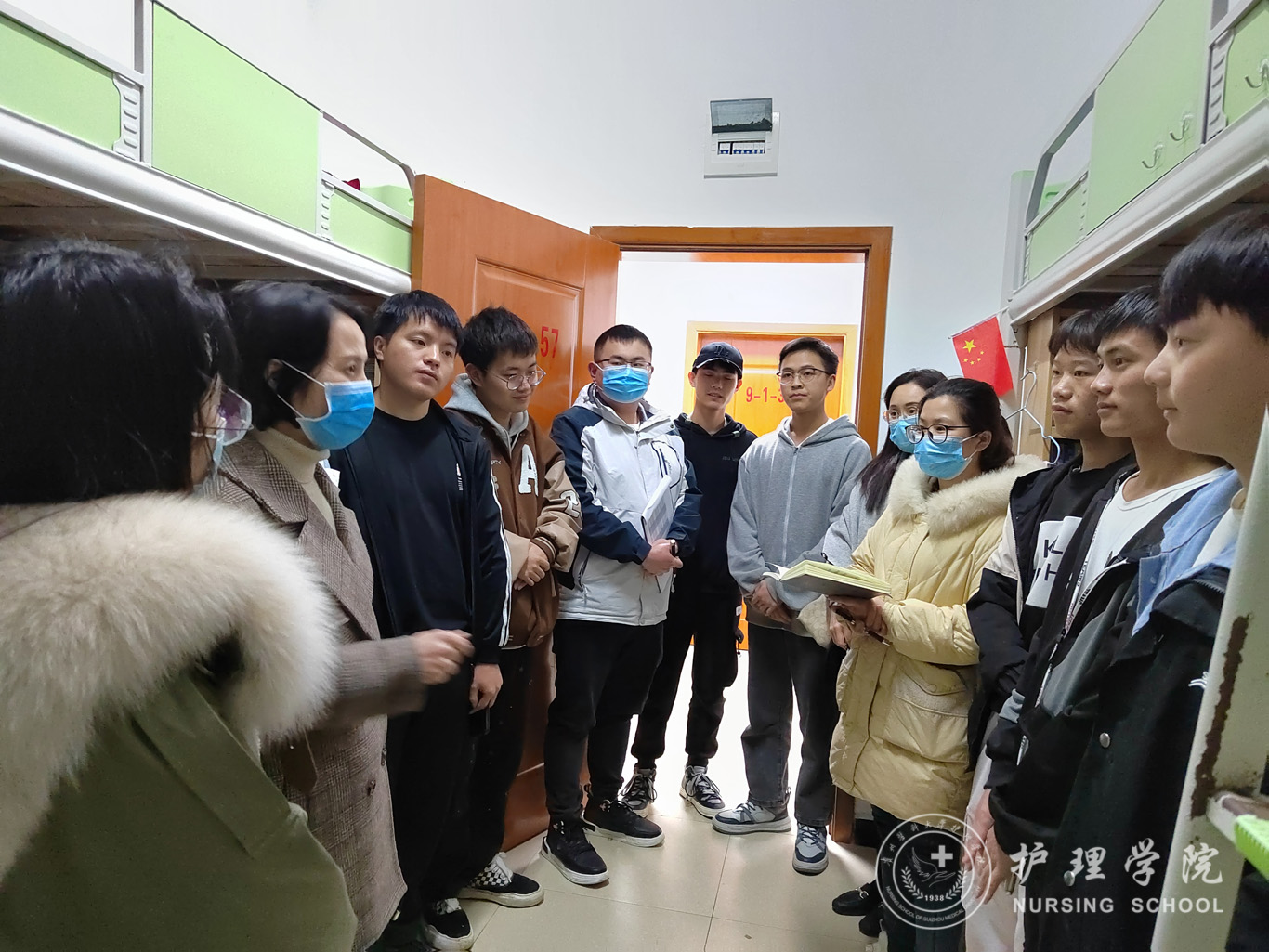 在走访期间,学院领导重点针对宿舍通风情况、宿舍卫生、水电使用等方面进行重点排查,确保用水用电安全;询问了同学们近期生活学习情况,就同学们在校园封闭管理期间遇到的问题和困难进行了深入交流。接下来,领导们给同学宣讲了目前学校疫情防控的相关规定,要求同学们要严格遵守学校管理规定,注意个人防护,保持良好的个人卫生习惯,严禁出现不假外出和翻墙外出的情况。领导们强调,现在国内国际疫情形势依然严峻,在学校进行封闭式管理期间,全体同学要保持好积极健康的心态,安排好学习和生活,把时间和精力放在有意义的事情上,坚持学习和思考,养成自律的习惯,努力变成更好的自己。