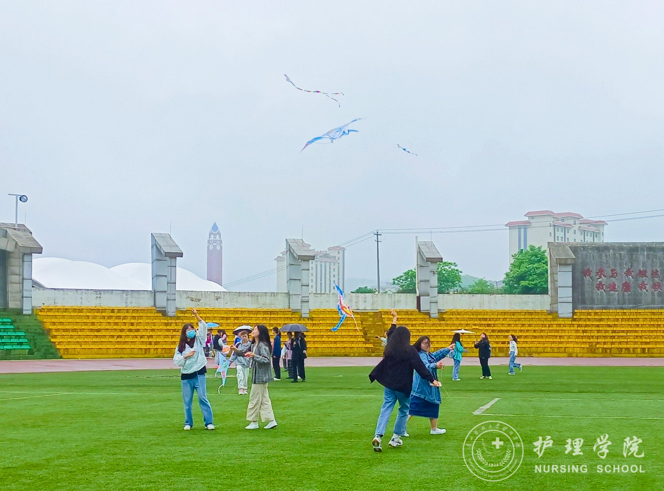 活动伊始,工作人员组织评委和参赛小组到达指定位置,发放风筝给各参赛小组。在大家的团结合作下,经过一小时的制作,风筝涂染完成,风筝的图案五彩斑斓,有波涛汹涌的红色中国梦,也有守卫人类健康的护理梦,天上的风筝你追我赶,伴随着同学们欢快的笑声,这些栩栩如生的“精灵”,顿时成了一道靓丽的风景线。