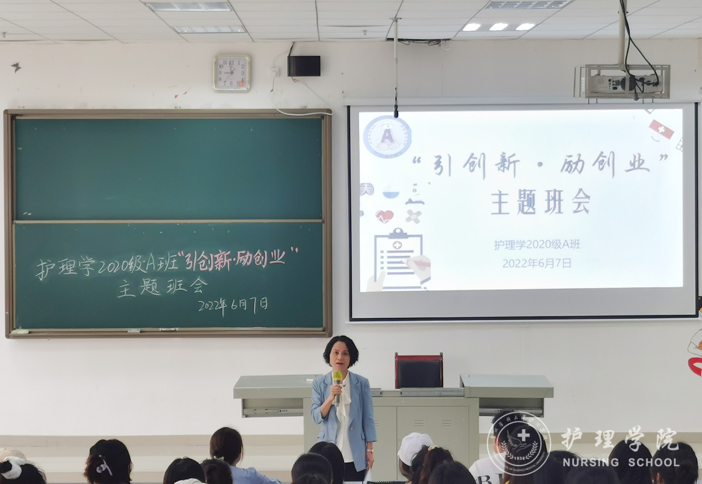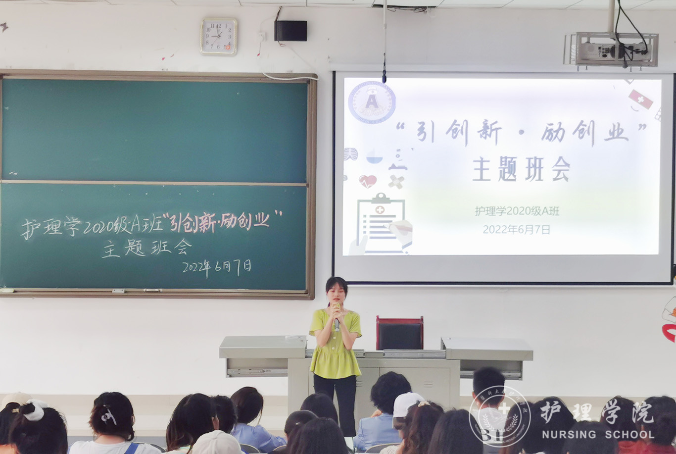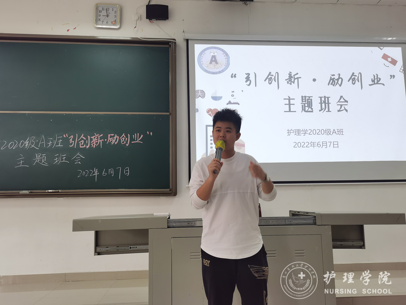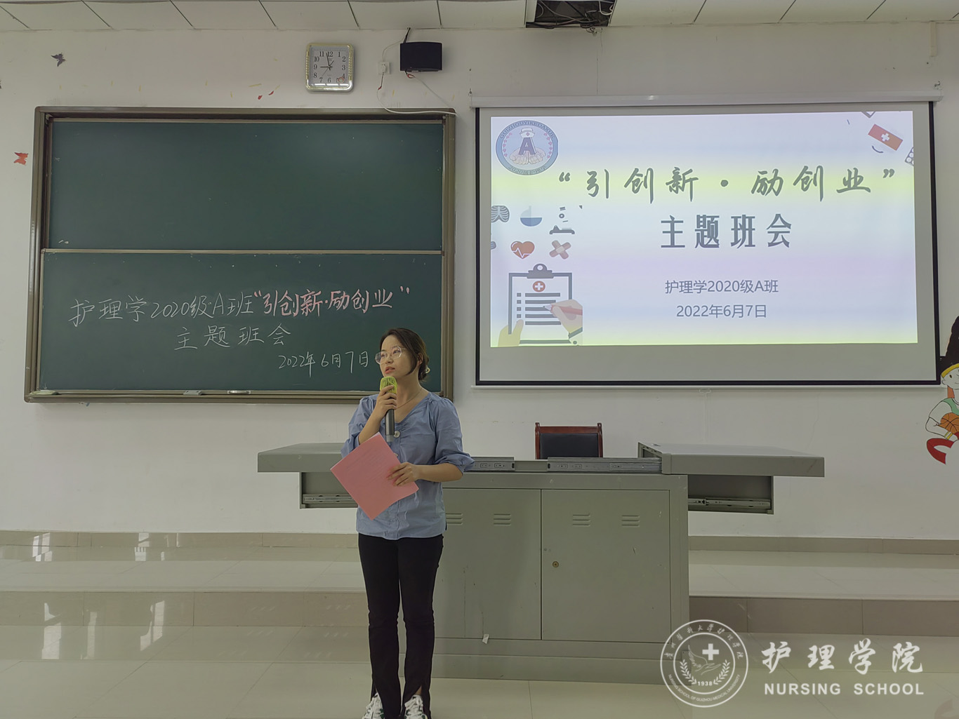 6月7日,为引导学生增强创新意识提升创业能力,护理学2020级A班在南校区4101教室以“引创新·励创业”为题召开了主题班会。本次班会由辅导员刘妍主持,美加墨世界杯官方网站党委书记杨英、“建行杯”贵州省第七届“互联网+”大学生创新创业大赛贵州省赛“职教赛道”铜奖获得者罗杨朝秀及护理学2020级A班全体同学参会。