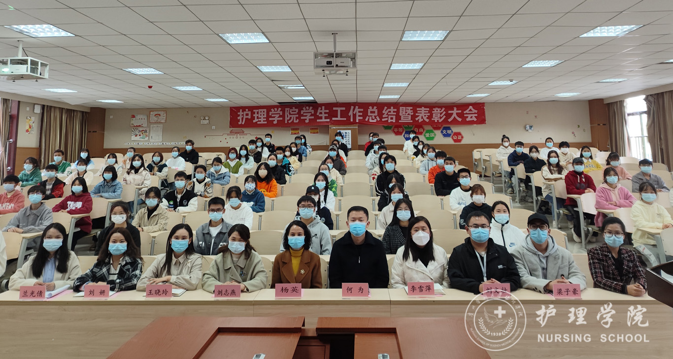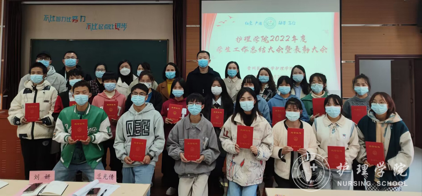 首先,何为从学生党团建工作、日常管理、毕业生就业工作、校园文化活动以及疫情防控志愿服务活动等方面对学院2022年学生工作进行了总结。副院长刘志燕宣读了表彰决定及获奖名单,并对获奖集体和学生个人进行鼓励,希望获奖同学来年更上一层楼。紧接着,学生代表胡锦江发言,他分享了自己进入大学以来的经历与收获,号召同学们学会审视自己,充分掌握护理学专业知识,做有理想有担当的青年学子。