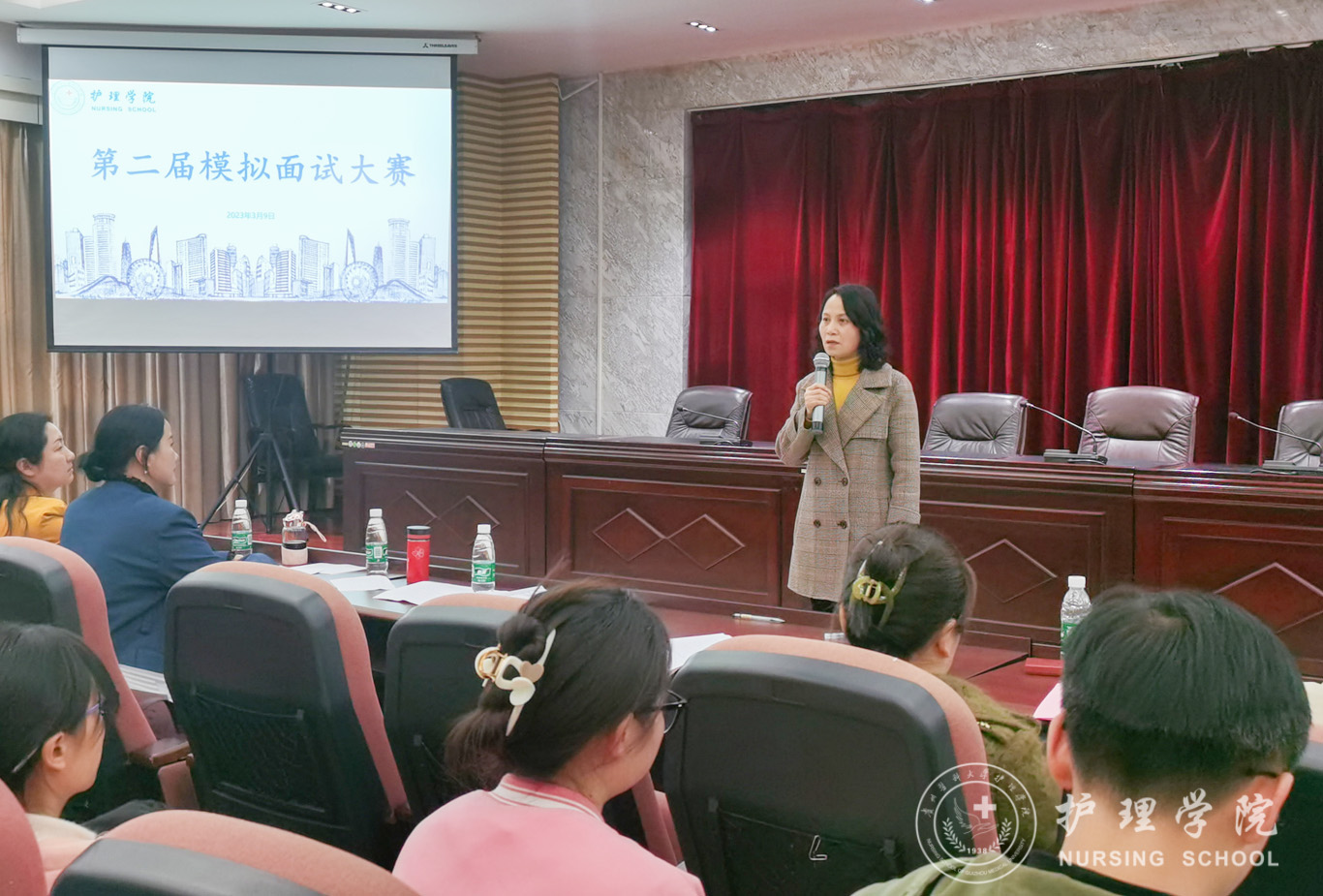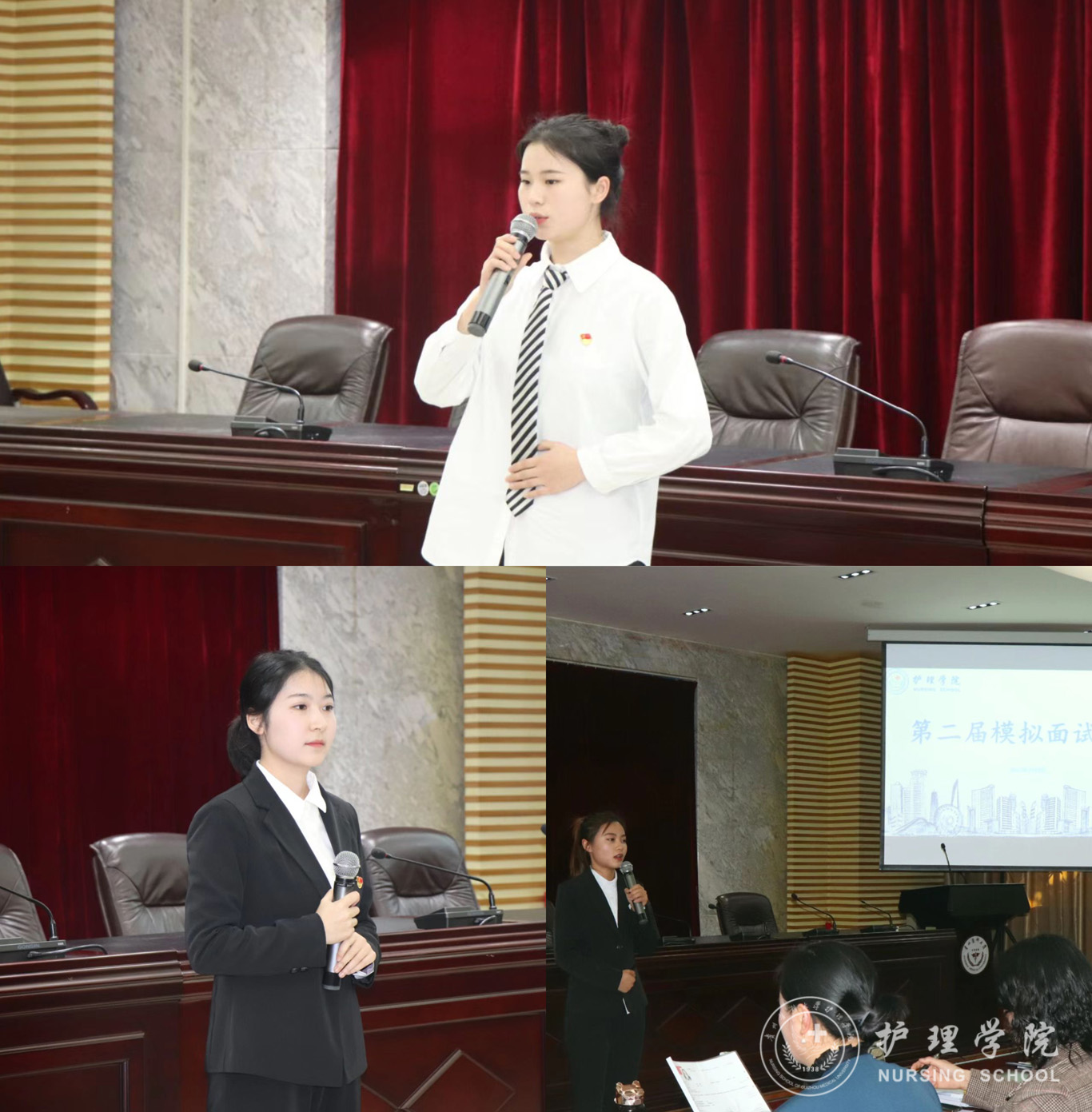 3月9日,为提升毕业生的竞聘能力与面试技巧,美加墨世界杯官方网站第二届模拟面试大赛决赛在北校区道德讲堂举行。美加墨世界杯官方网站党委书记杨英、党委副书记兼纪委书记何为、正科级组织员曾敏、护理人文教研室副主任张仁莉、护理学妇儿科教研室副主任徐锟、团委副书记王晓玲、辅导员杨叶卿、刘妍出席并担任评委,2019、2020级各班学生代表参加了现场观摩,本次比赛由助产学2020级赵雪同学主持。