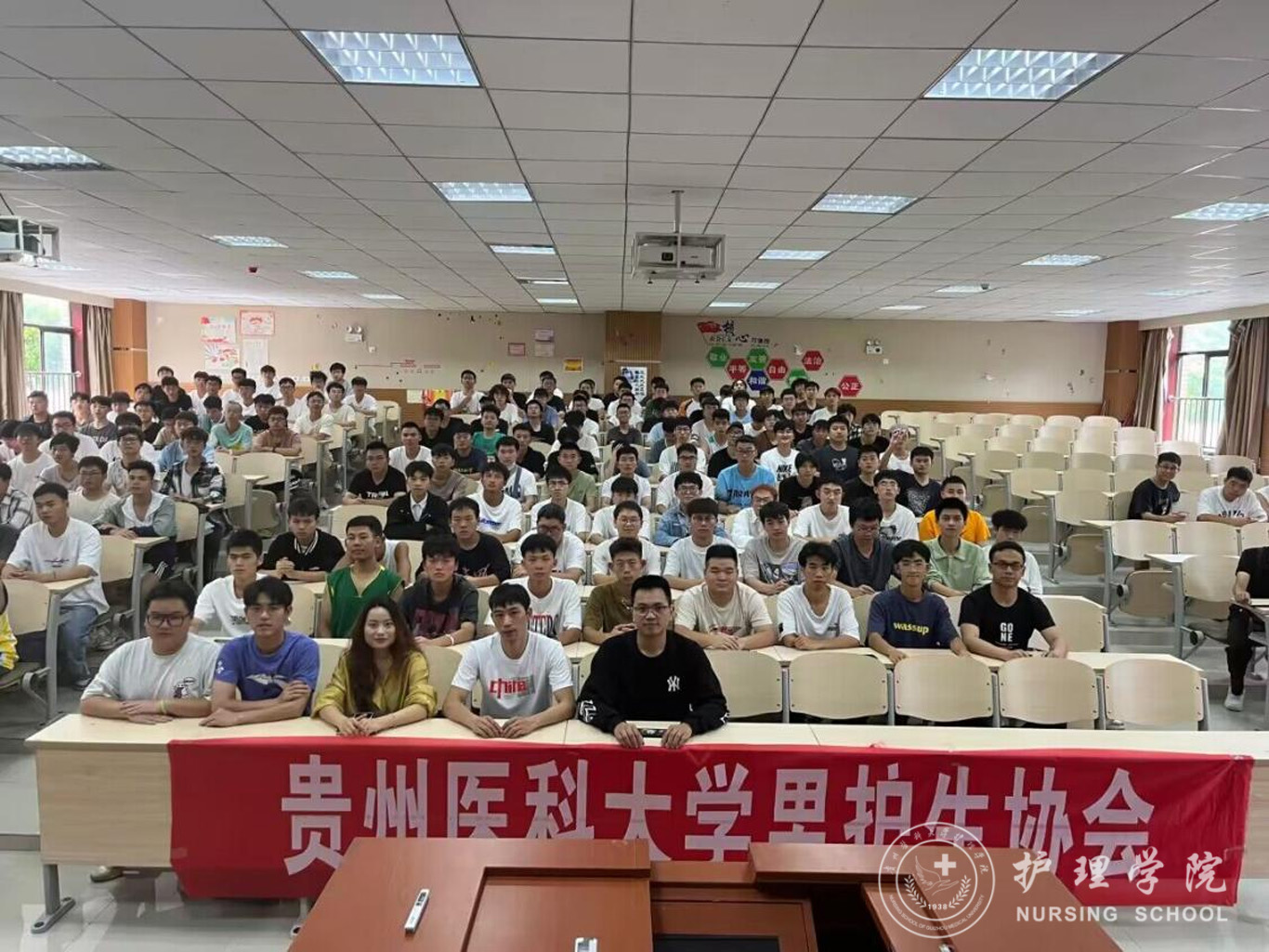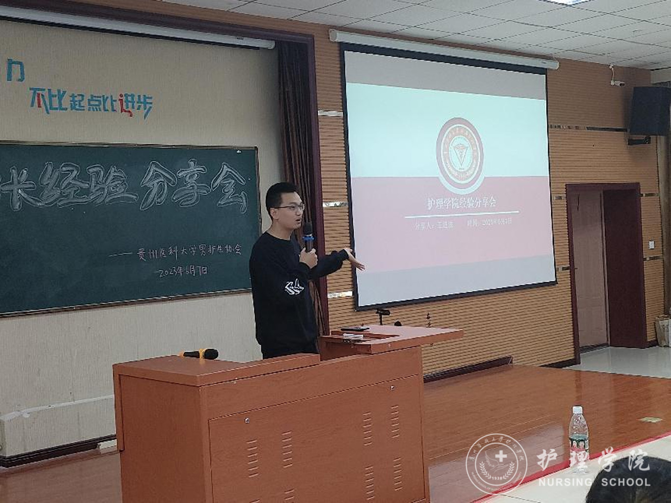 首先,曾荣获“援鄂抗疫英雄”称号、得到贵州省人民政府记功的谭洪林向在场的同学分享了自己当时参加援鄂抗疫的情景。在新型冠状病毒肺炎疫情爆发后,他主动请缨,奔赴抗疫一线,和贵州省援鄂医疗队的成员一道打赢了疫情防控阻击战。谭洪林勉励同学们要学习过硬本领,勇于担当、善于作为,在祖国和人民需要的时候主动奋斗在护理第一线,为保卫人民群众的生命健康安全奉献自己的力量。接着,曾获推免研究生资格于武汉大学攻读硕士研究生毕业的王进波回顾了在校期间学习时学院的培养,他谈到在校期间学院曾开展了各种形式的专业思想教育和专业技能培训,这些专业思想教育和专业技能培训融入了他的生命,使他不断成长为一名保持感恩、热爱、奉献、坚守的“白衣天使”,他希望在校同学们把握时光,珍惜机会,不断加强自身专业本领学习,始终学在实处、做在前列,绽放属于护理学子的专业光辉。最后,杨英作讲话并提出希望,她勉励同学们学会改变、学会自励、发奋学习,在担当中历练,在尽责中成长,练就攻坚克难的本领,磨炼百折不挠的意志,脚踏实地、砥砺前行,在人生的道路上行稳致远,焕发属于自己青春的绚丽色彩。