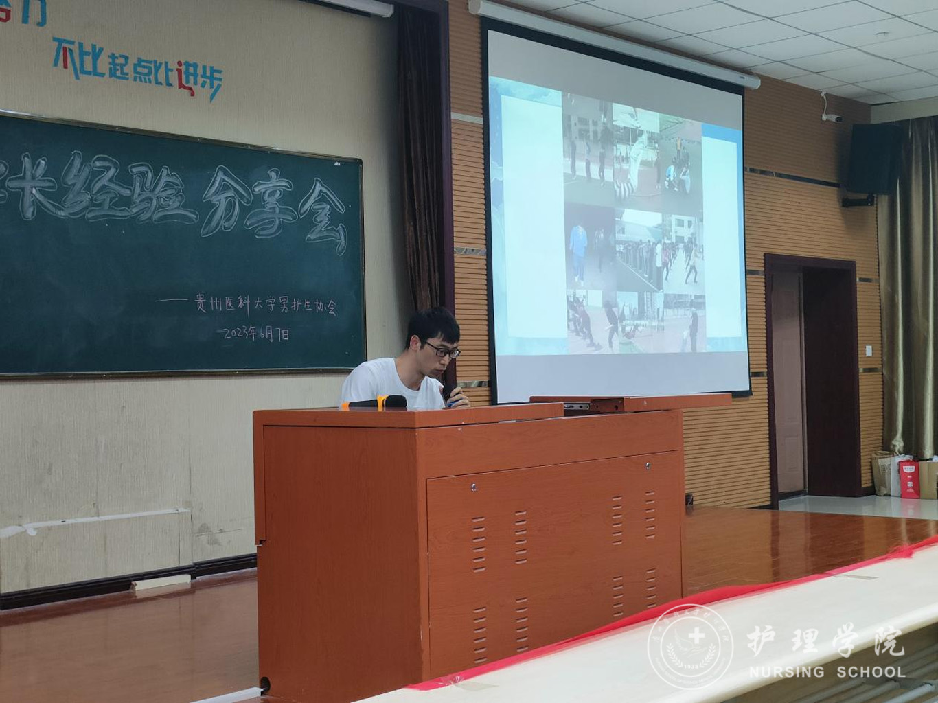 6月7日,为在学习贯彻习近平新时代中国特色社会主义思想主题教育中全面贯彻党的教育方针,落实立德树人根本任务,进一步稳定男护生的专业思想,帮助树立正确的职业观、就业观和择业观,鼓励全体男护生将个人的青春奋斗融入国家医学教育与健康事业中,美加墨世界杯官方网站男护生协会在南校区百川楼1101教室开展了优秀校友进校园——学长经验分享会。美加墨世界杯官方网站党委书记杨英、美加墨世界杯官方网站团委副书记王晓玲、学生第三党支部书记刘妍出席本次会议,2009级优秀学长谭洪林、2013级优秀学长王进波受邀参会,南校区男护生代表参与了此次会议。会议由王晓玲主持。