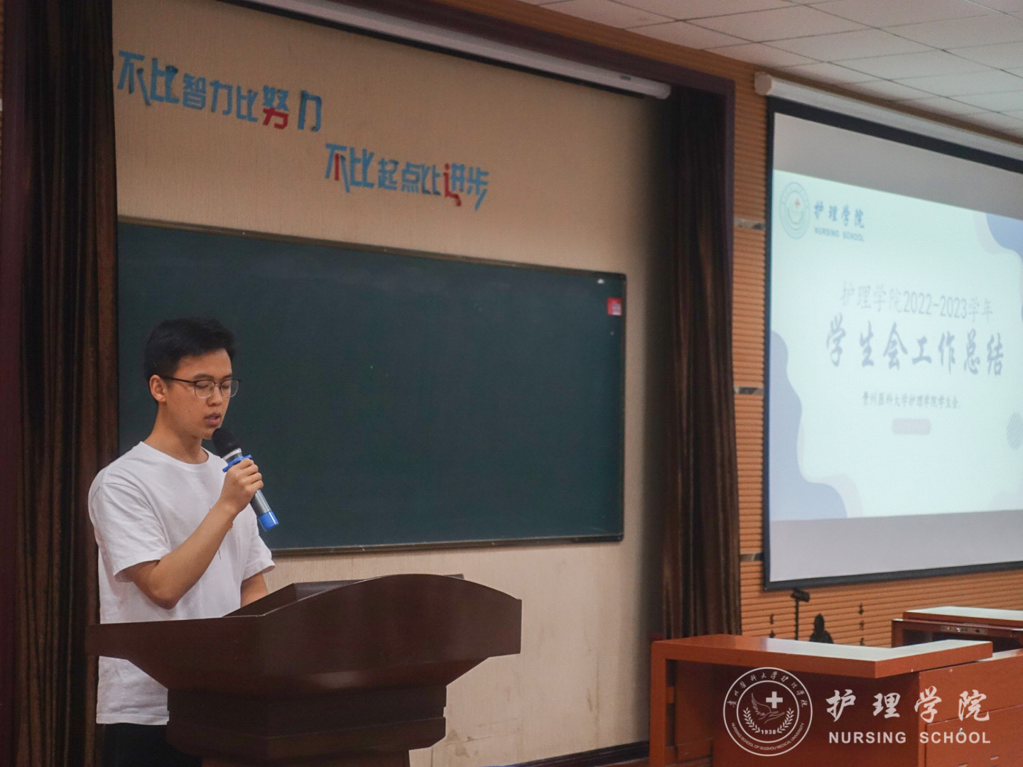 杨英作总结讲话。她对学院团学工作给予了充分肯定,并对学生组织新成员给予厚望,坚信这次大会必将成为世界杯官网学生工作开拓前进的新里程碑。她对新一届学生会成员提出要求:一要担当起重任,共同参与新校区搬迁工作和建设工作,提升自我管理、自我教育、自我服务等能力;二要做到履职尽责,为同学做好服务,不断提升服务水平;三要充分发挥先锋模范作用,将个人追求同国家民族的前途命运紧密结合起来。