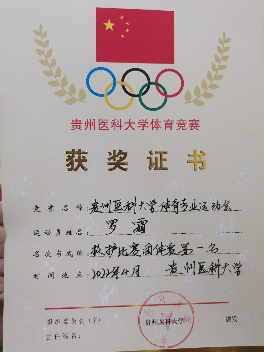 2022年4月参加美加墨世界杯官方网站体育专业运动会救护比赛团体赛第一名