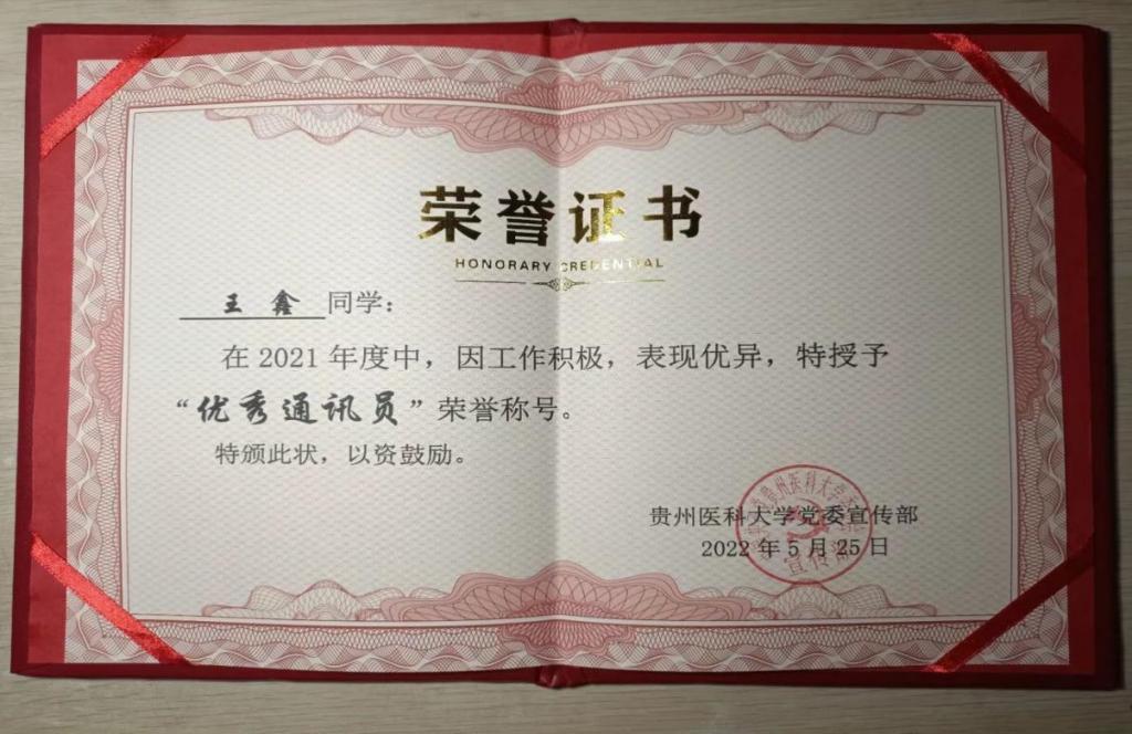 在2021年在校报通讯社中表现积极,荣获校报通讯社“优秀通讯员”的称号: