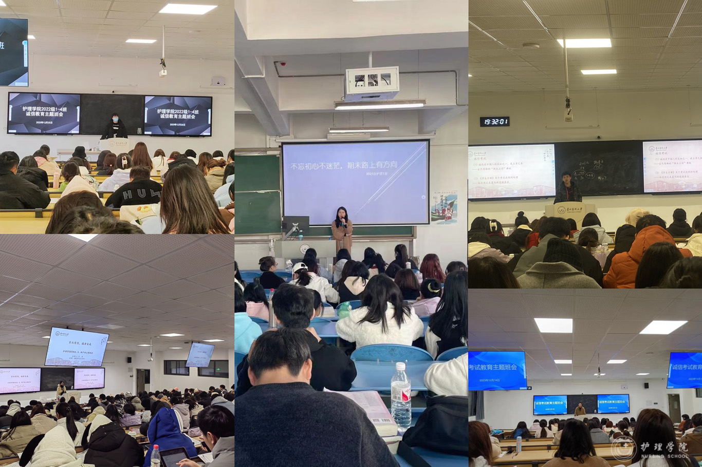 2021-2023级分别以“不忘初心不迷茫 期末路上有方向”“学向勤中得 踏实则有为”“言而有信 诚者自成”等为主题进行诚信教育。会上,辅导员老师们对比了大学考试与高中考试的变化,鼓励了同学们正视变化,认真努力的备考,沉重冷静地应考。部分班级邀请学习委员分享学习方法、带领同学们学习《学生手册》中关于考试作弊等违纪行为的处理条款,强调了诚信的重要性,呼吁同学们要做到诚信考试、诚信立人。