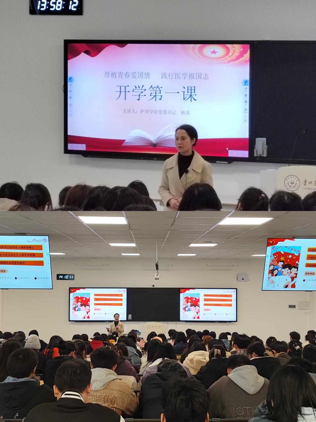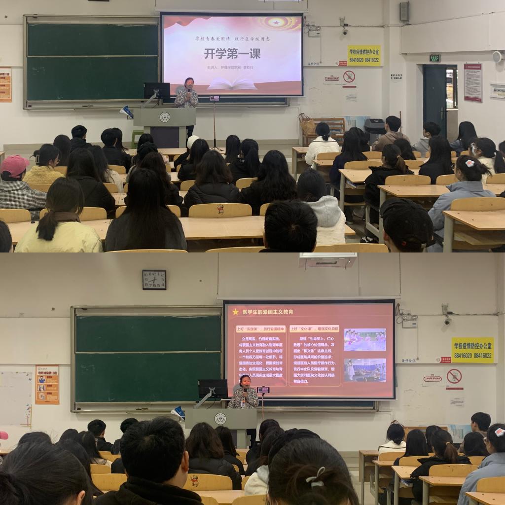 3月15日,为深入贯彻落实《中华人民共和国爱国主义教育法》,加强新时代爱国主义教育,传承和弘扬爱国主义精神,美加墨世界杯官方网站党委书记杨英、院长李亚玲分别于云漫湖校区临床组团R205教室、北京路校区药学楼4101教室为美加墨世界杯官方网站全体学生讲授“开学第一课”。各班辅导员也深入班级开展爱国教育主题班会,本次活动以线上线下的形式结合开展。