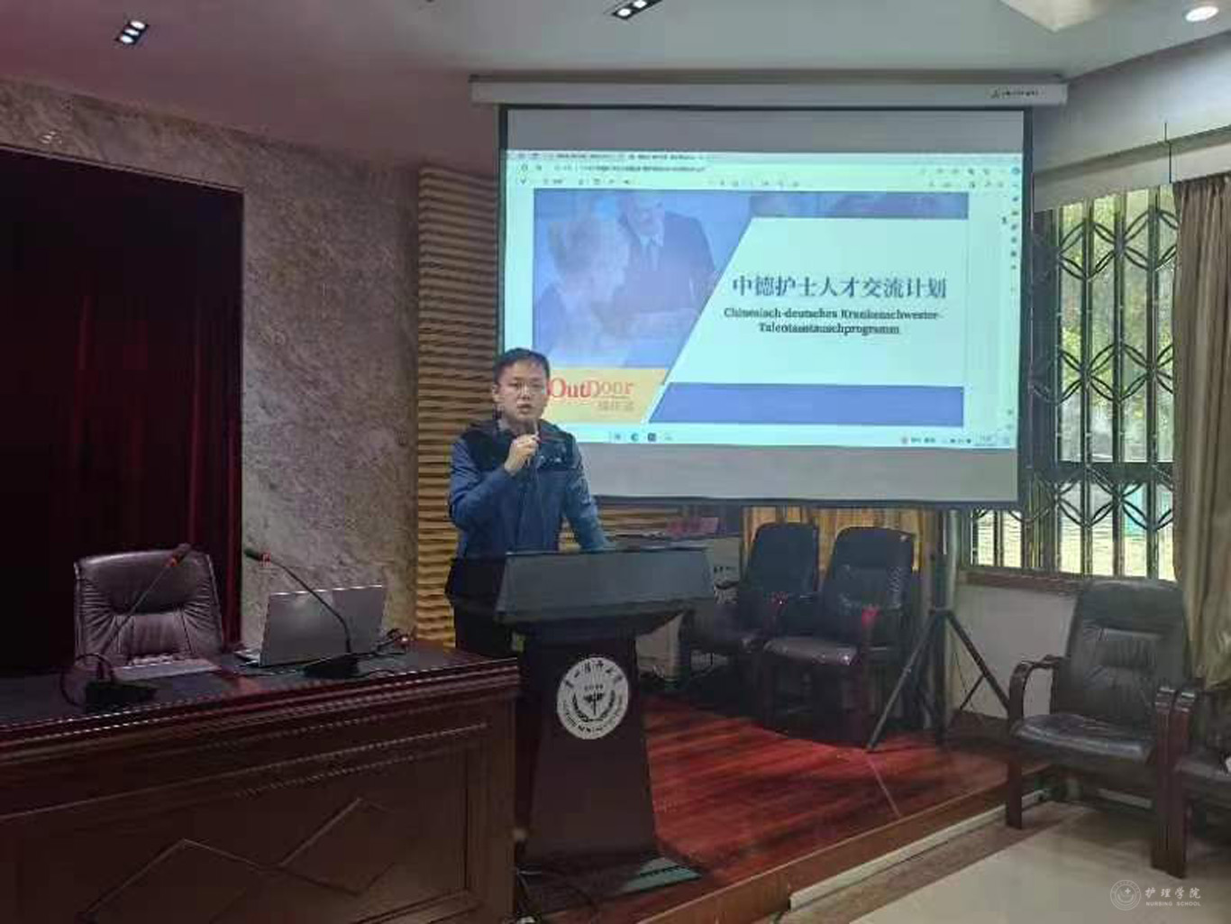 3月28日,为进一步拓宽毕业生就业深造渠道,搭建学习平台,增强学生对护士职业发展的认识,美加墨世界杯官方网站在北京路校区道德讲堂举办了“护理人才赴德就业深造计划”项目宣讲会。宣讲会由辅导员兰光倩主持。