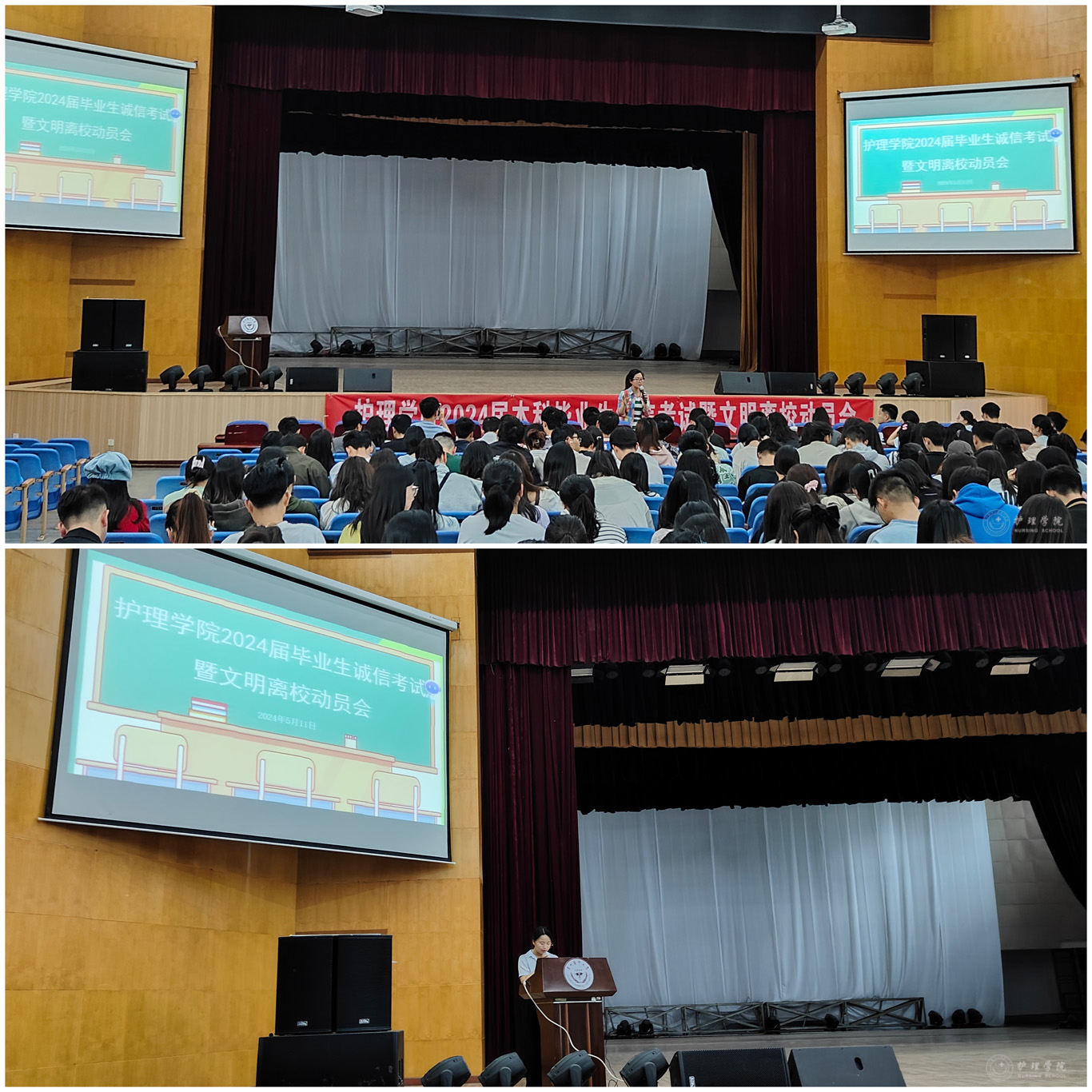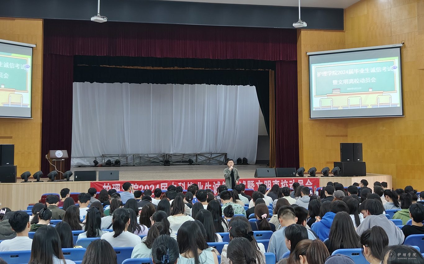 5月11日,为加强学风建设、严肃考风考纪,营造健康、文明、有序、和谐的毕业生离校氛围,美加墨世界杯官方网站在北京路校区礼堂召开了2024届本科毕业生诚信考试暨文明离校动员会,美加墨世界杯官方网站党委副书记兼纪委书记何为、学生管理科副科长毕丽以及2024届本科毕业生参加此次会议。会议由毕业班辅导员刘妍主持。