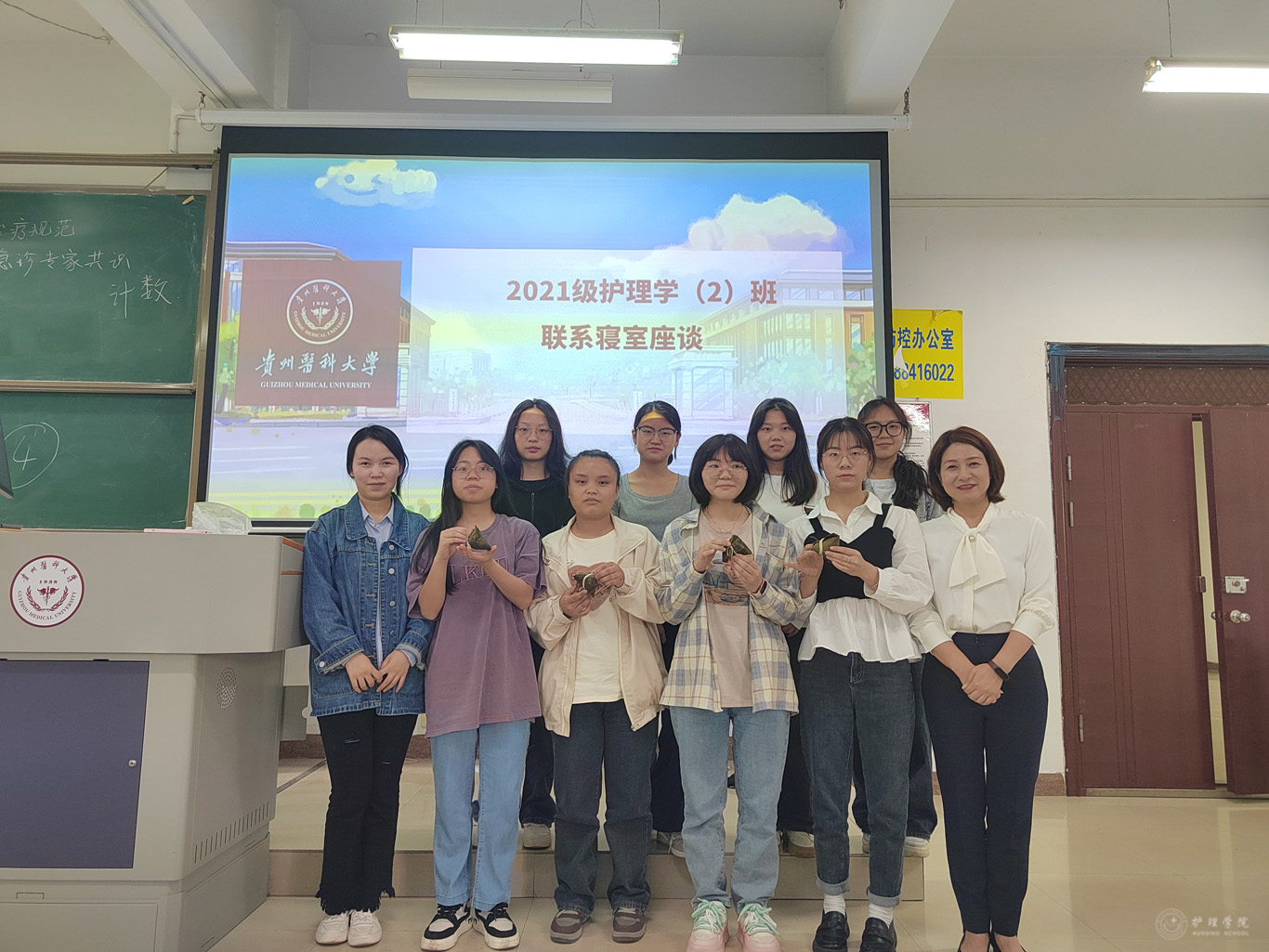 班会结束后,张黎与联系寝室的八位同学进行了深入交流并送上端午祝福。她鼓励同学们要多学习,不断开阔自己理论视野,提高思考能力和写作水平,同时对即将踏入临床实习的同学们提出了殷切期盼,希望大家不断培养自己严谨思考、细心谨慎、慎独自律的工作习惯,争取早日成为一名合格优秀的护理人。