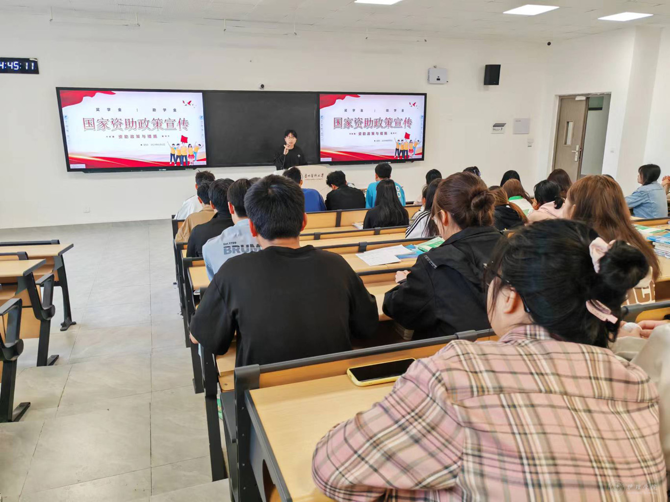 活动中,曾令健用PPT讲解和观看视频的方式,带领同学们学习了国家奖学金、国家励志奖学金、国家助学金、国家助学贷款、大学生入伍学费补偿代偿等相关政策的申报条件、评定标准与注意事项,介绍了大学生资助政策的出台对于推动教育公平具有的重要意义。因为家庭经济的原因,曾令健也申请了国家助学贷款,作为一名受助者,他说:“国家对大学生的资助不仅是物质上的帮助,更是精神上的鼓励,是为了激发学生的学习积极性,让优秀的学子得到更好的教育。”同时,作为一名国家奖学金的获得者,他分享了自己的学习方法和学习心得,鼓励同学们珍惜来之不易的学习机会,奋发向上,力争上游。