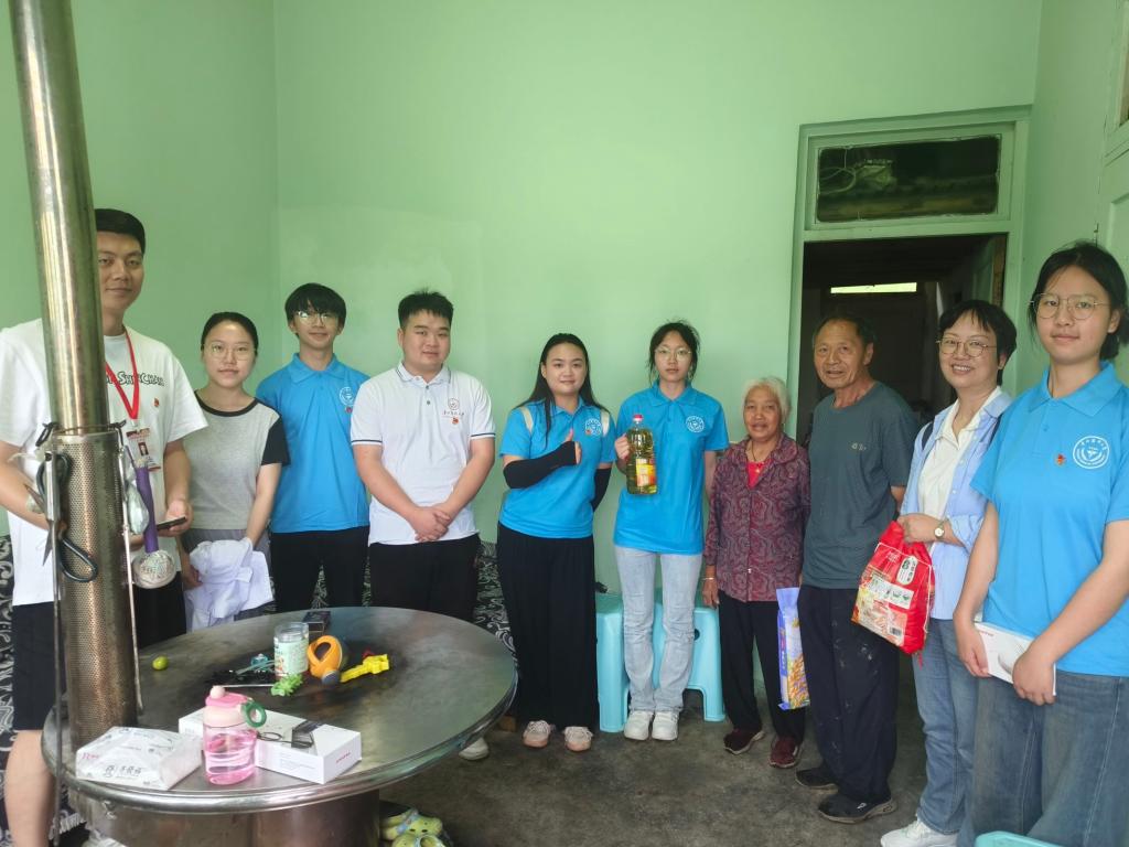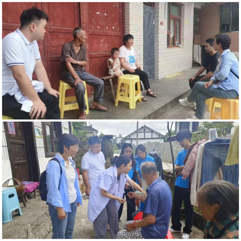 到达果底村的第一站,志愿服务队员们便在驻村干部的带领下走访慰问了三户留守重点保障老人,与老人拉家常、问冷暖,并结合专业知识为老人进行针对性的健康指导。通过走访慰问,志愿服务队员们不仅给老人们带来精神上的慰藉和青年学子的温暖关爱,还通过交流座谈了解到了乡村留守重点保障老人们的生活及健康状况,进一步坚定了投身护理事业的信念,立志要为向老人们提供精准化优质的老年护理服务贡献自己的一份力量。