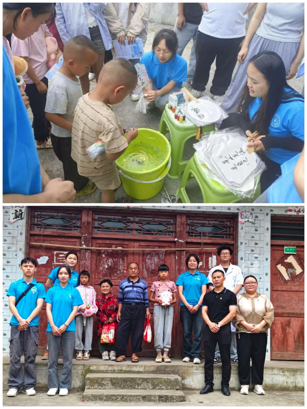 慰问完老人后,志愿服务队员们在驻村干部的带领下走进了两户留守儿童的家中,为孩子们送去学习用品,给他们温暖的陪伴,并邀请他们一同参加在村委会组织的手工制作活动。手工制作活动现场,志愿者们精心准备了手工漆扇制作活动和现场急救知识抢答,孩子们在哥哥姐姐的指导和鼓励下,感受到了成功的喜悦,激发了自信,收获了温暖。