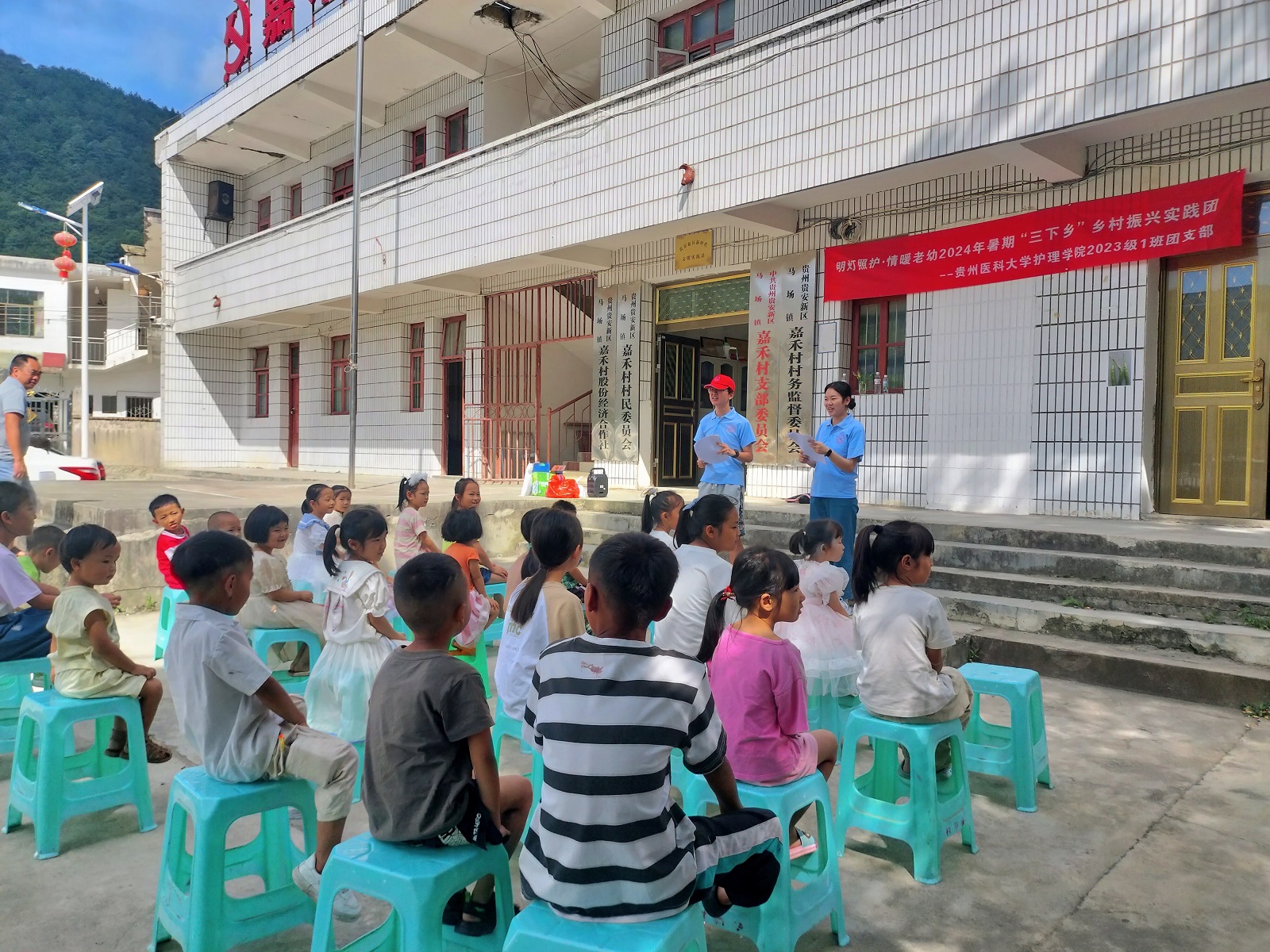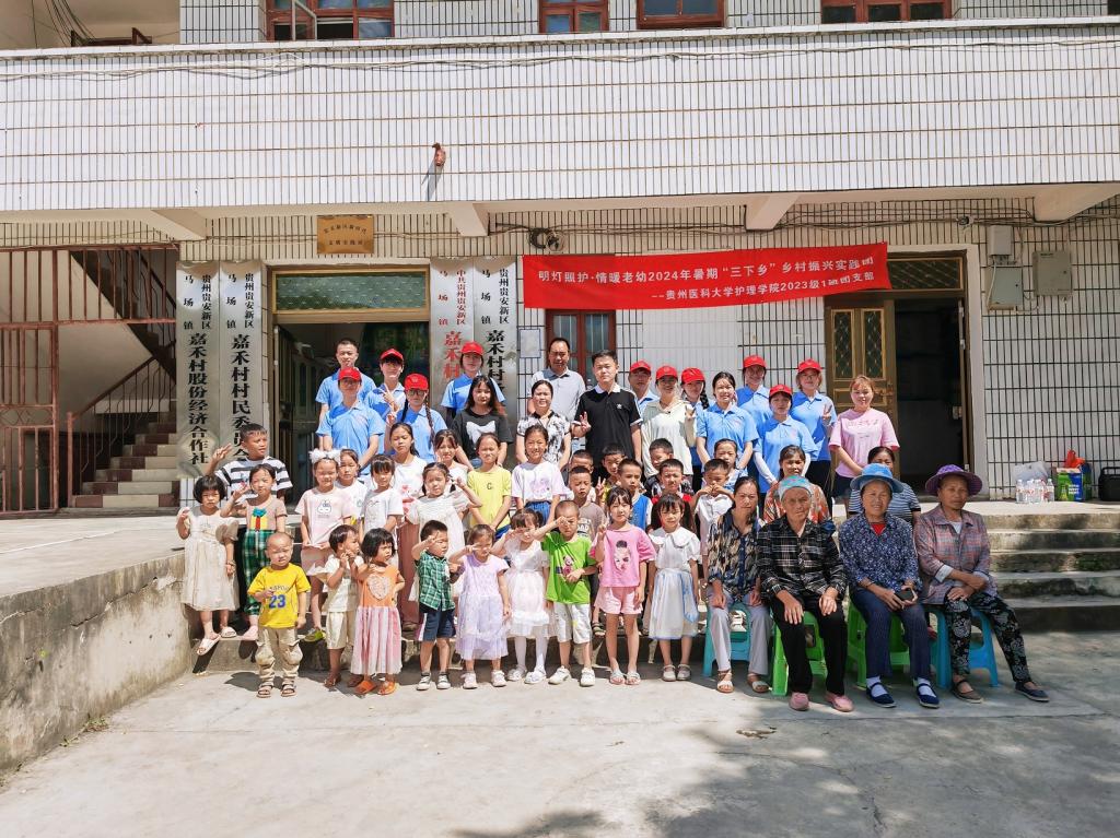 为深入学习贯彻习近平新时代中国特色社会主义思想,引导青年学生了解国情民情,在社会实践中受教育、长才干、做贡献,7月17至19日,美加墨世界杯官方网站“明灯照护·情暖老幼”社会实践队一行在学院指导老师何为、孔苗的带领下前往贵安新区马场镇嘉禾村及平寨村开展社会实践活动。队伍此行围绕乡村振兴主题,通过演绎情景剧、健康义诊、入户慰问、对高龄老人的养老问题和健康问题进行调研等系列活动为老人和孩子们送去温暖与关爱,在实践中培养青年的社会责任意识和担当。