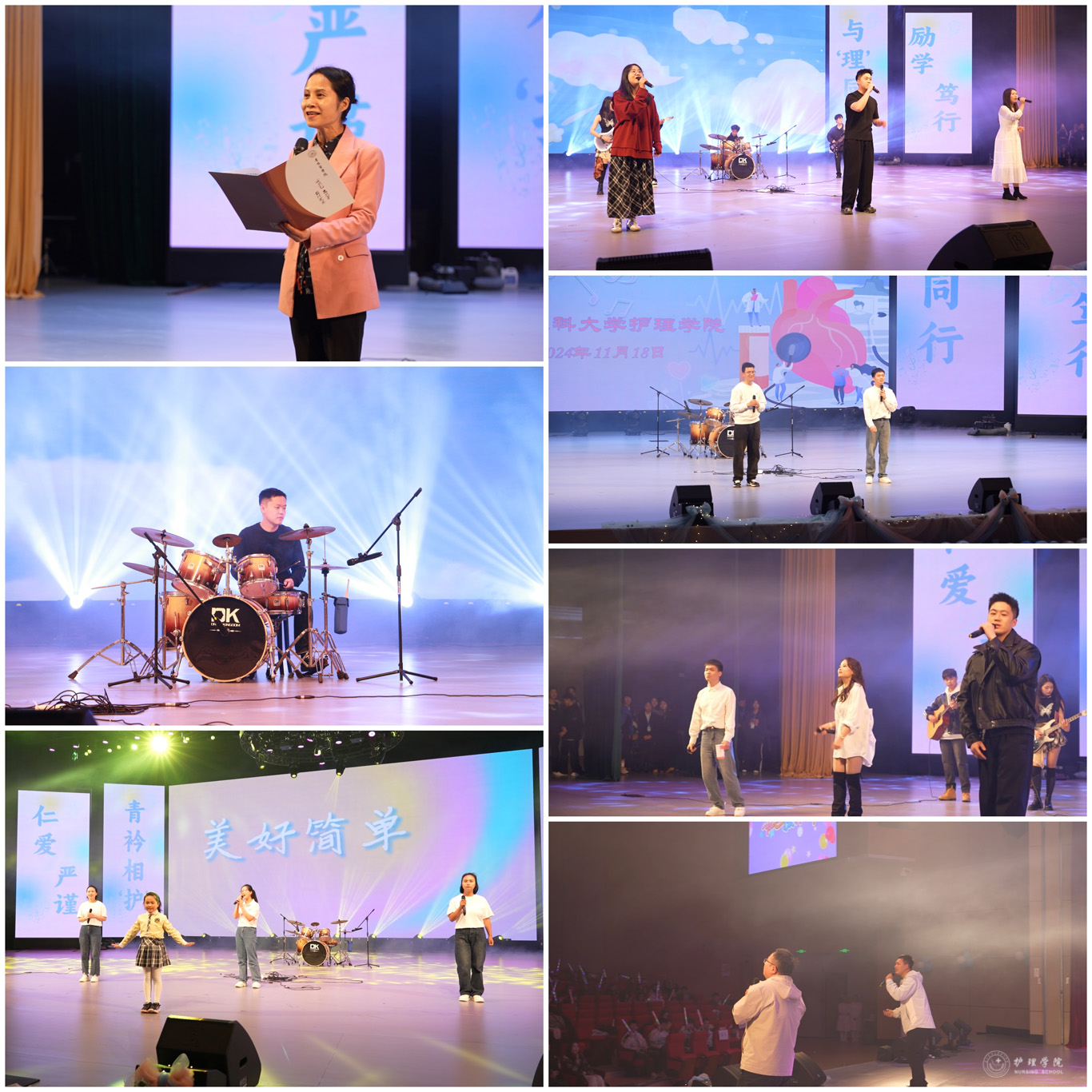 晚会在精彩绝伦的乐队表演《你要跳舞吗》中拉开帷幕,杨英向现场来宾及师生表达了问候,寄语2024级新生要传承贵医护理人的奋斗精神和大爱之光,要在青春的赛道上奋力奔跑,扬帆起航。
