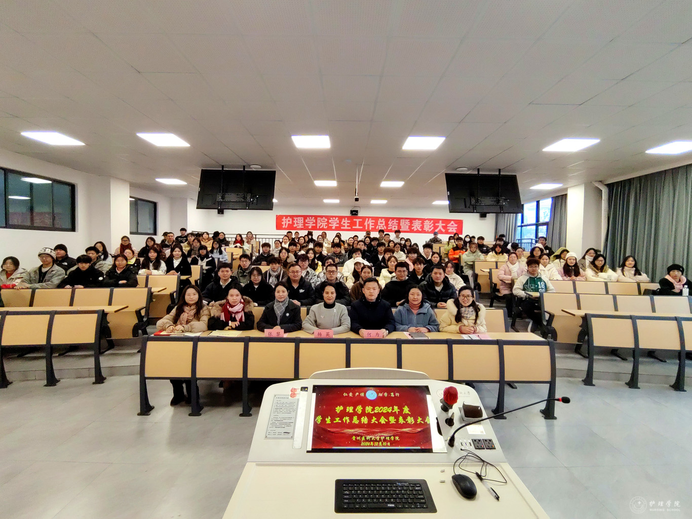 12月10日,为总结学院2024年度学生工作,表彰在学生工作中涌现出的先进集体和优秀个人,美加墨世界杯官方网站在云漫湖校区酬勤楼L109召开学生工作总结暨表彰大会。美加墨世界杯官方网站党委书记杨英、党委副书记兼纪委书记何为、副处级组织员张黎、正科级组织员曾敏、全体辅导员、受表彰的学生代表参加,会议由学生管理科副科长毕丽主持。