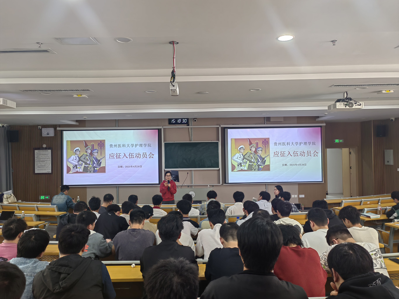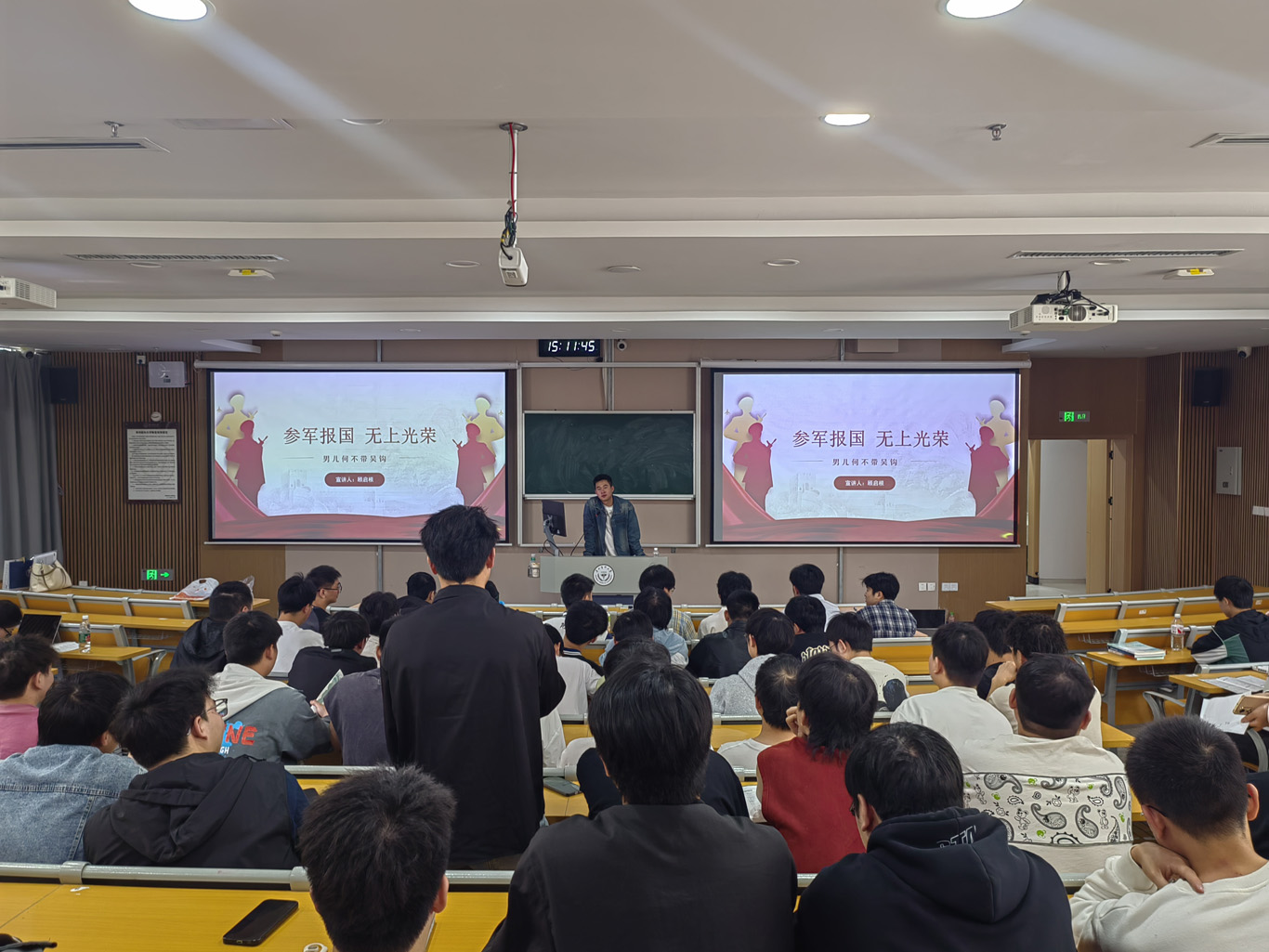 最后,毕丽向参会同学阐述了参军入伍的重要性和深远意义。她强调,参军入伍不仅是个人成长和锻炼的重要途径,也是为国防安全稳定和长远发展贡献力量的光荣使命。她呼吁全体同学积极响应,踊跃投身军旅,加入到保家卫国的伟大队伍里,共同为祖国的国防事业奉献自己的青春与力量。