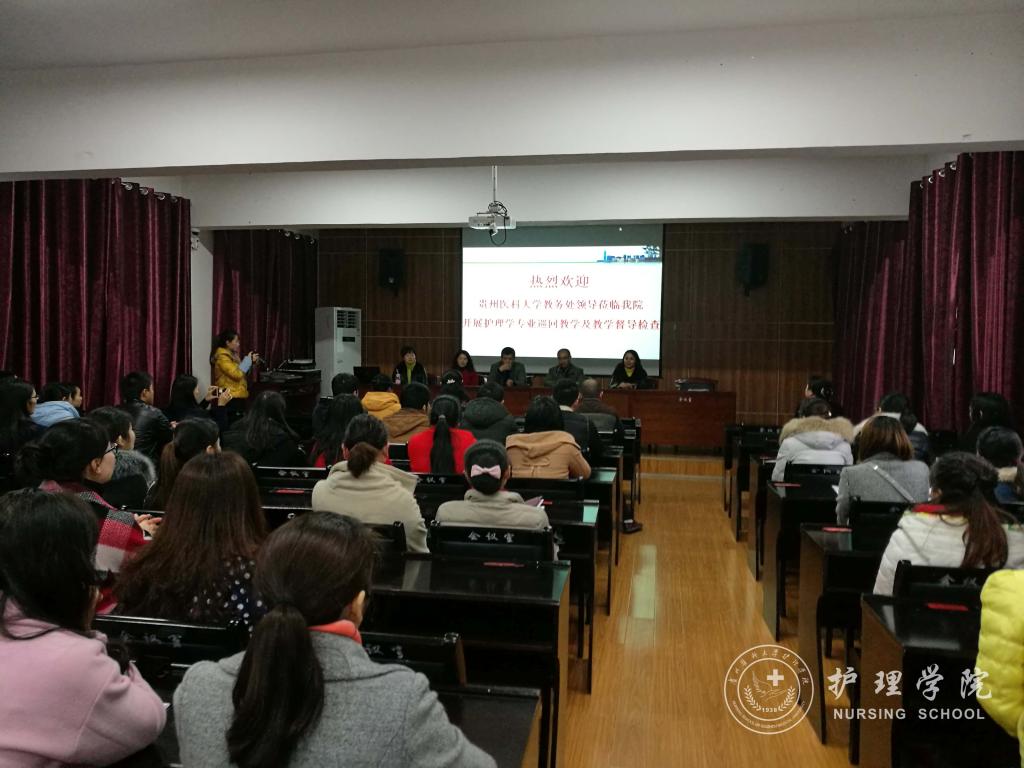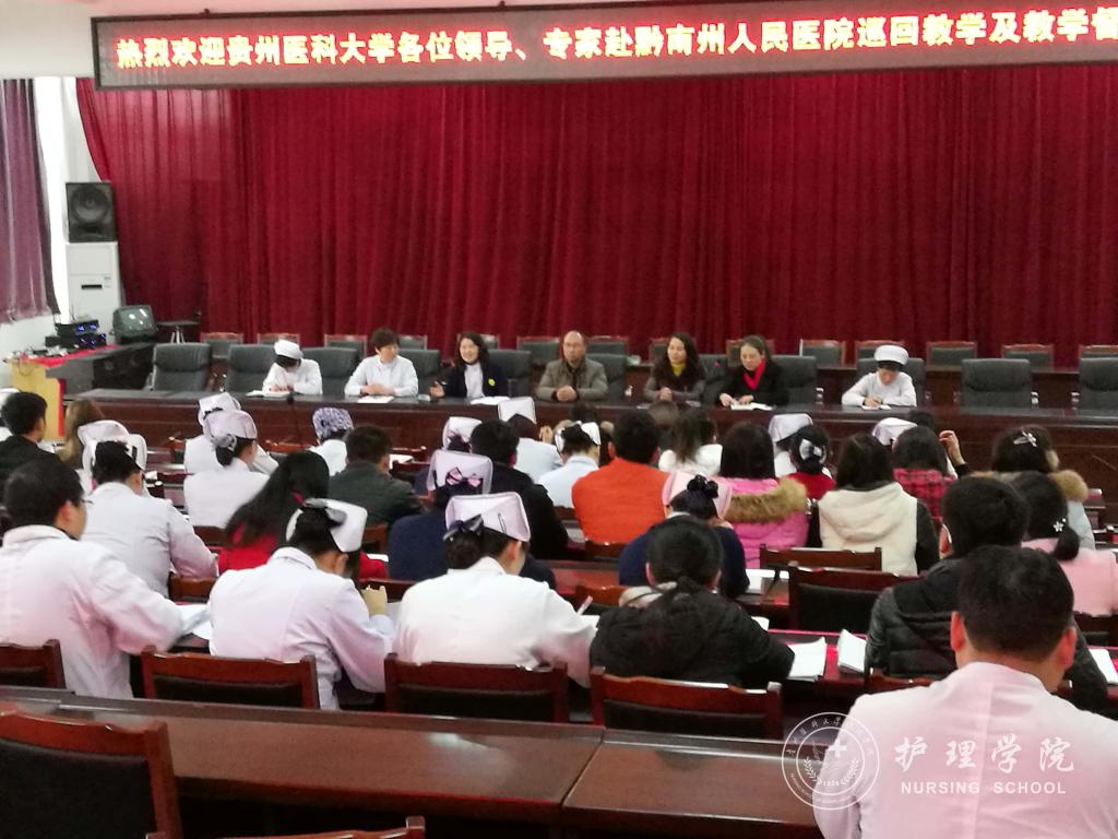 根据学校教务处教字〔2016〕71号文件《美加墨世界杯官方网站关于开展2016~2017学年护理学专业毕业实习巡回教学及教学督导检查的通知》要求,为了加强临床实习基地建设,提高毕业实习实践教学质量,2017年1月3日~9日、3月9日~17日,在教务处教学质量监控与评估办公室副主任左临轩的带领下,美加墨世界杯官方网站党委副书记杨英、美加墨世界杯官方网站副院长刘志燕、生产实习科科长柳忠燕、附属医院临床护理专家王锐霞、唐薇等一行前往美加墨世界杯官方网站附属医院、第二、三附属医院、附属省人民医院、贵阳市第四人民医院、黔南州人民医院、六盘水市人民医院等各实习基地进行了毕业实践教学质量检查及巡回教学。