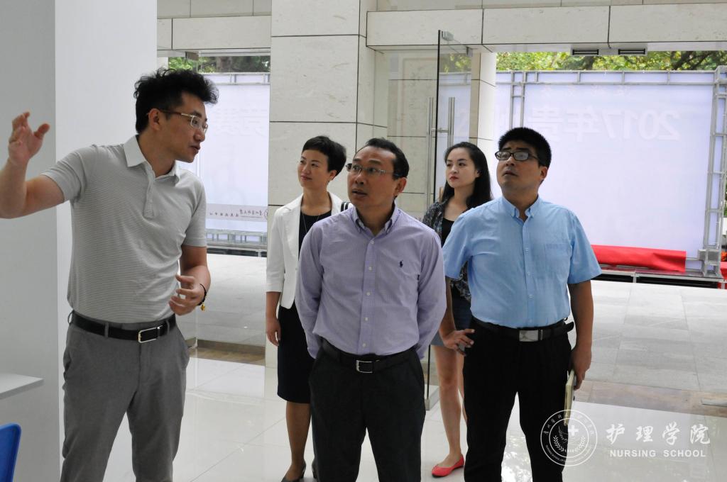 9月7日上午,单院长一行在学校科技创新与产业发展处处长兼医院管理有限责任有限公司总经理涂波 、大健康学院副院长刘涛、美加墨世界杯官方网站党委副书记杨英、副院长刘志燕、西南项目申报负责人美加墨世界杯官方网站王秀红等人陪同下,分别对学校临床技能中心、护理学技能实验中心、大健康学院(贵州省健康发展研究中心)等处进行了实地考察。每到一处,单院长一行对学校开展健康服务业所具备的基础条件和设施,包括人员、实验室场地、实训机构及场所等进行了详细的了解,并对部分实验设施和条件的改善提升提出精准的建议。