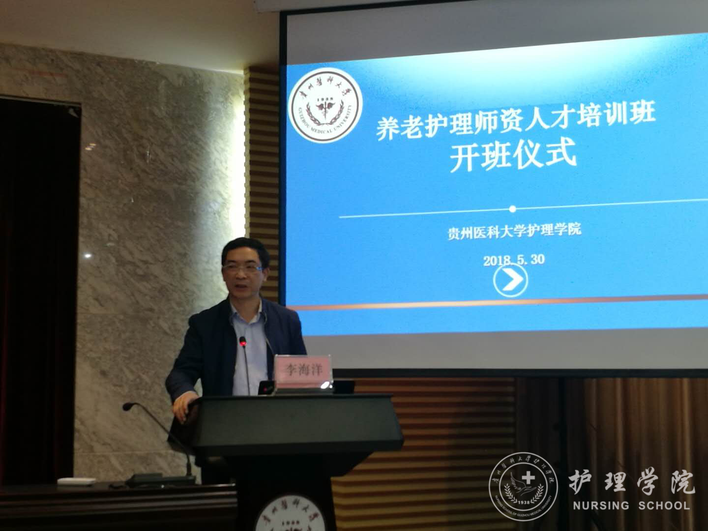 美加墨世界杯官方网站附属医院党委副书记李海洋教授出席开班仪式并讲话。来自美加墨世界杯官方网站、美加墨世界杯官方网站附属医院等7家附属医院150余名教师和贵阳中西医结合老年病医院、贵阳市金狮社区卫生服务中心、安顺302医院等单位30余名老年护理、健康管理从业人员参加了学习培训。本次培训班邀请到美加墨世界杯官方网站院长贾秀英教授、基础医学院修江帆博士、护理学基础教研室王秀红副教授等教学技术及养老护理、健康管理的专家担任授课教师,专家们以精彩、风趣、实用、前沿的讲授为大家介绍了养老护理师资需具备的情感、态度、技能及养老护理员培训过程中需注意的问题,重点围绕养老护理师资的情商培养、教学PPT的制作、“雨课堂”在教学过程中的运用、成人学习的特点与有效培训、人口老龄化背景下养老护理人才需求现状及发展、养老护理员培训规范等内容进行了培训。最终近150人全程培训结束获得美加墨世界杯官方网站颁发的养老护理师资人才培训班培训证书。