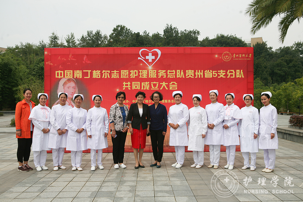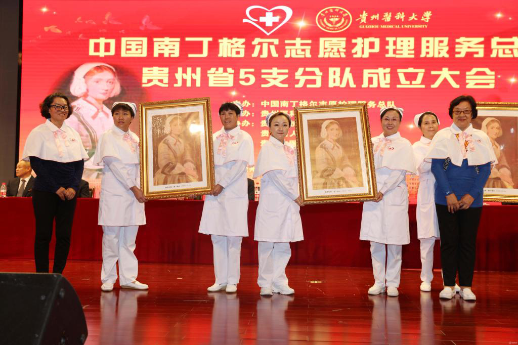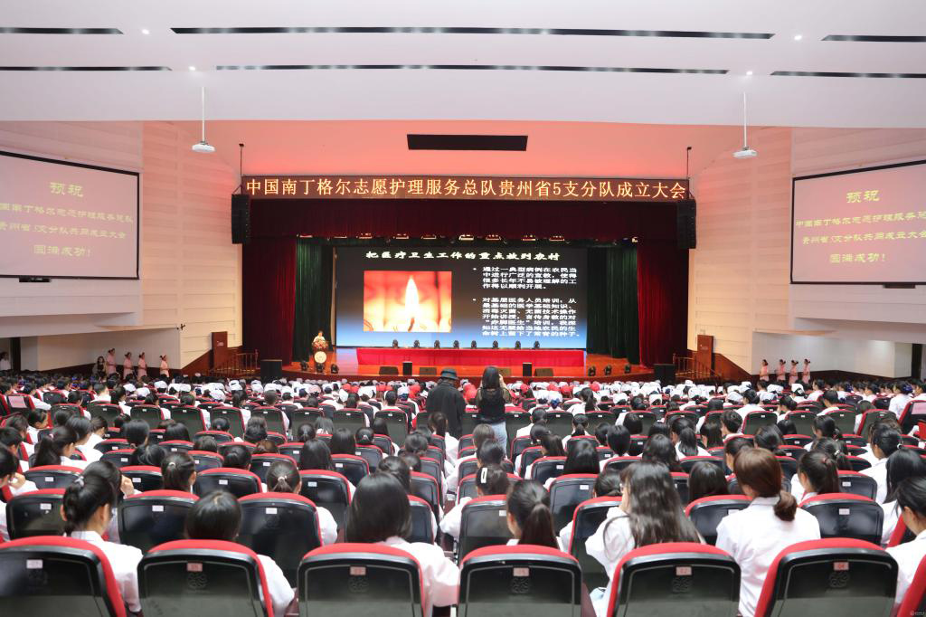 9月25日,中国南丁格尔志愿护理服务总队贵州省5支分队成立大会在美加墨世界杯官方网站召开,第43届南丁格尔奖章获得者、中国南丁格尔志愿护理服务总队理事长张利岩,第39届南丁格尔奖章获得者、中国南丁格尔志愿护理服务总队副理事长陈东,中国南丁格尔志愿护理服务总队副理事长姜景惠,贵州省卫生健康委员会医政医管处处长陈莉,贵州省红十字会秘书长邓守权,第39届南丁格尔奖章获得者贵州护理前辈苏雅香,贵州省护理学会理事长江华容,美加墨世界杯官方网站党委书记林昌虎,纪委书记王之瑞,附属医院党委书记刘文,副校长田晓滨出席,美加墨世界杯官方网站副校长刘健担任主持。来自美加墨世界杯官方网站及省内37家护理院校和医疗机构近1500名护理志愿者欢聚一堂,共同见证了中国南丁格尔志愿护理服务总队贵州省护理学会分队、美加墨世界杯官方网站分队、贵州省人民医院分队、贵州中医药大学第二附属医院分队、贵州工商职业学院大健康学院护理学会分队5支分队的成立。