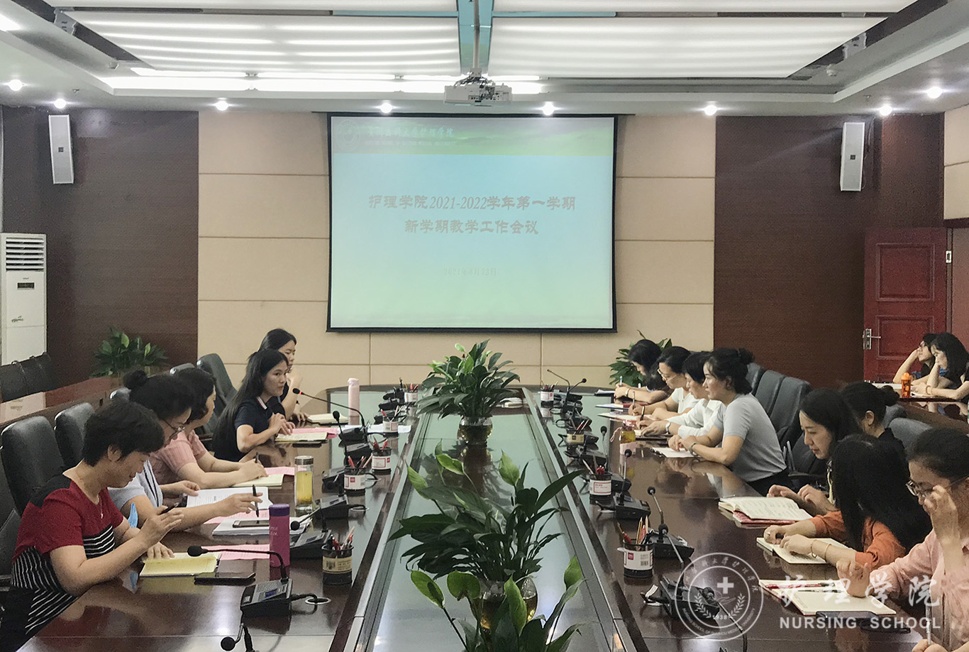 开学伊始,为更好的部署、落实新学期教学工作计划,保障新学期教学工作顺利开展,8月23日,美加墨世界杯官方网站在北校区行政楼六楼会议室召开2021-2022学年第一学期新学期教学工作会议。院长李亚玲、副院长刘志燕、副院长王秀红、全体专业教师、教学科研管理科全体人员参会,科长卢海霞主持会议。