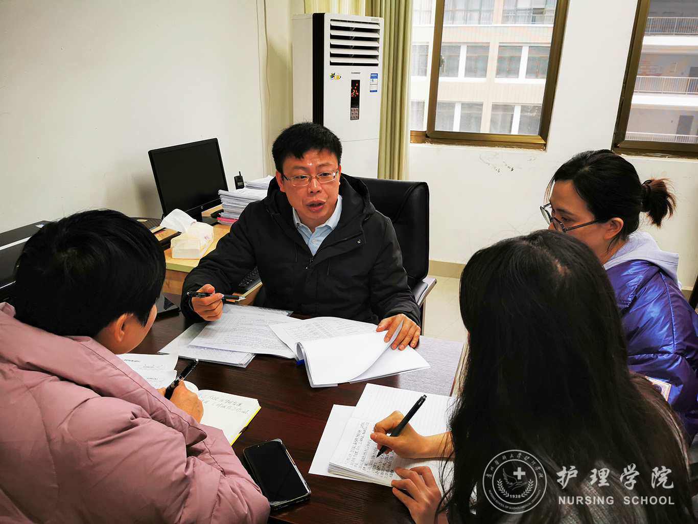 检查前,教学质量监控与评估办公室主任冯广卫讲话指出,开展中期教学检查的目的在于以查促建、以查促改、以查促管、以查促教的良性机制。检查组对照评价指标体系,结合教学工作常态化和教学档案规范化建设情况对学院、教研室和实验室进行逐一细化评分,并查看上一检查周期中存在问题的整改落实情况。强调教学中期检查结果将纳入各教学单位年终目标管理绩效考核指标。