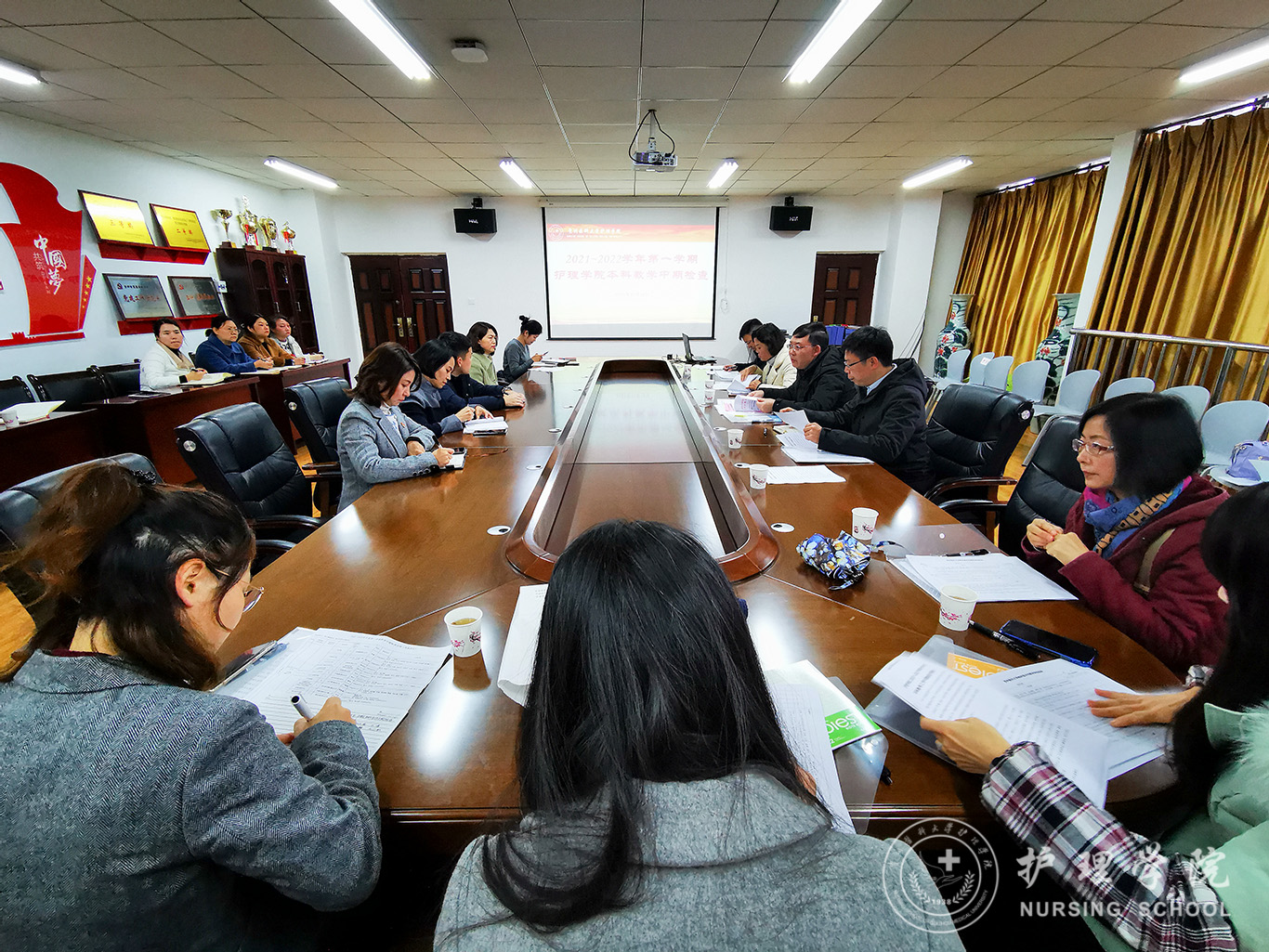 11月16日,学校本科教学中期检查专家组一行来到美加墨世界杯官方网站进行2021-2022学年第一学期教学中期检查工作。院党委书记杨英,党委副书记何为,副院长刘志燕,副处级组织员张黎及各教研室、实验室、教学科研管理科全体老师参加此次检查。
