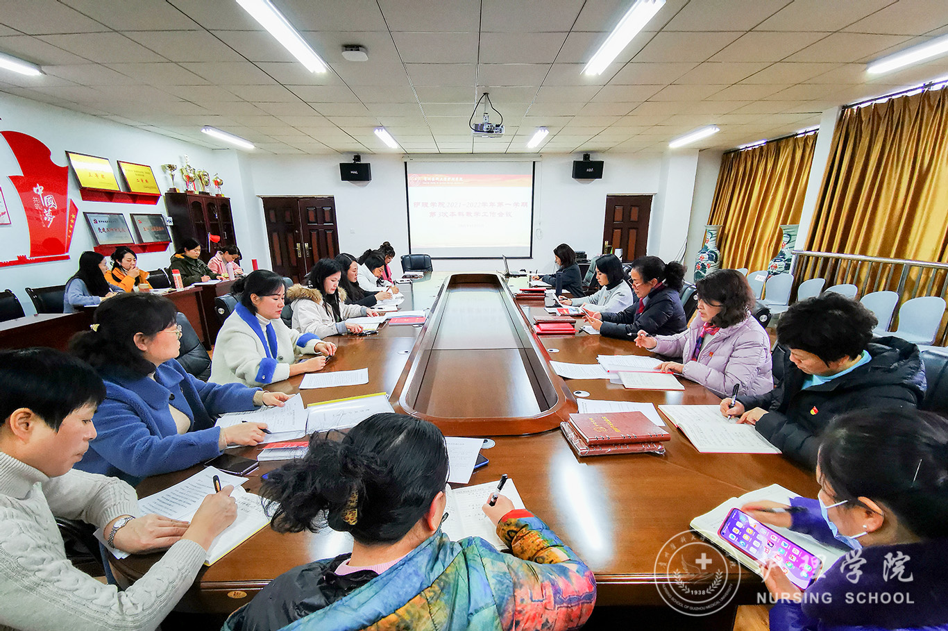 11月22日,世界杯官网在南校区百川楼美加墨世界杯官方网站5楼会议室召开本学期第3次本科教学工作会议。院党委书记杨英、院长李亚玲、党委副书记何为、副院长刘志燕、副院长王秀红、副处级组织员张黎、全体专业教师、教学科研管理科全体人员参会,教学科研管理科科长卢海霞主持会议。