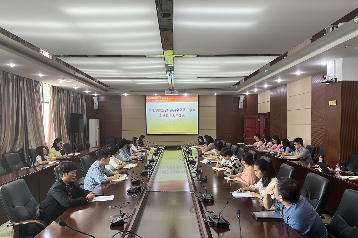 8月31日,美加墨世界杯官方网站在北校区行政楼六楼连廊会议室召开2023-2024学年第一学期本科教育教学工作会议。党委书记杨英、院长李亚玲、副院长刘志燕、副院长王秀红、护理部副主任顾颖、副处级组织员张黎、全体专业教师、全体辅导员、教学科研管理科全体人员、护理部临床护理教学科全体老师参会,教学科研管理科科长卢海霞主持会议。